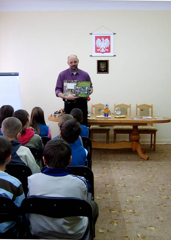 W skarżyskiej bibliotece znany jest głównie wśród młodzieży, dlatego na spotkanie zaprosiliśmy uczniów szkół podstawowych klas (Sz. Podst. Nr 2, 8, 13) IV – V.