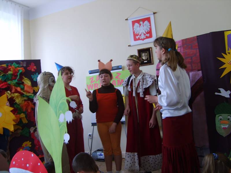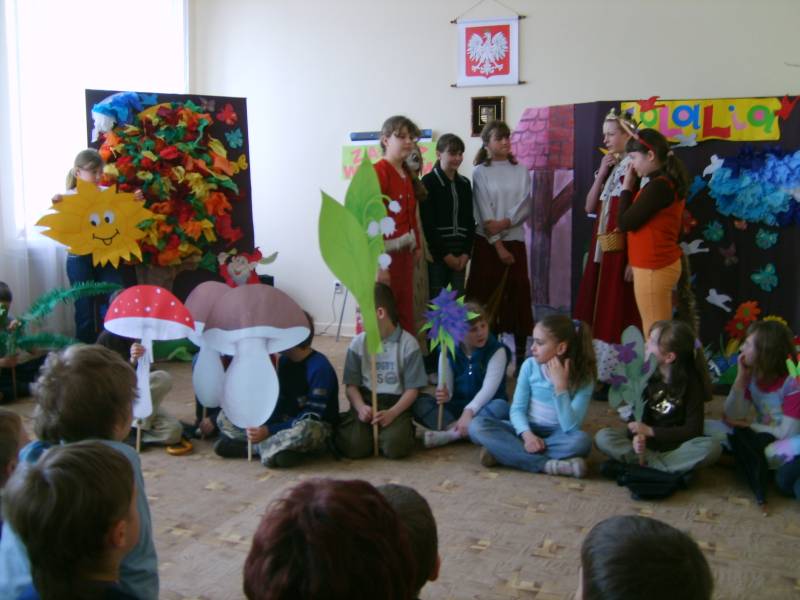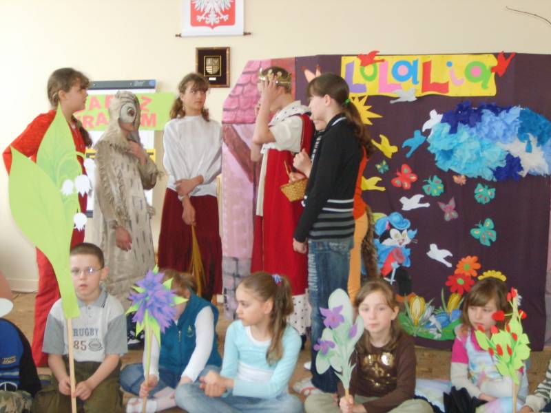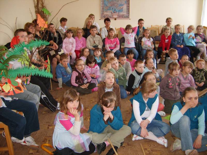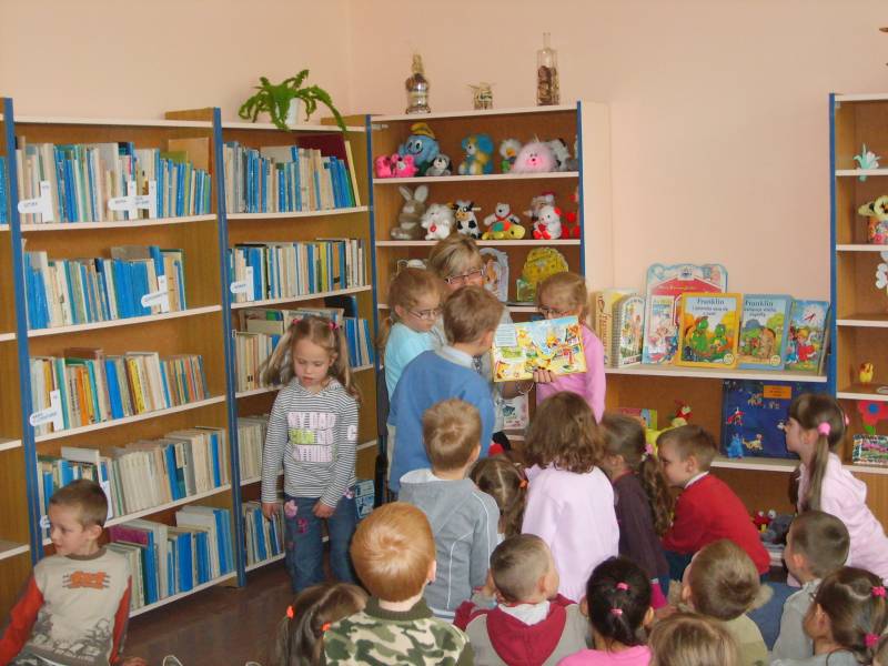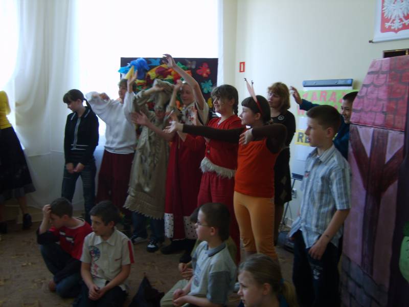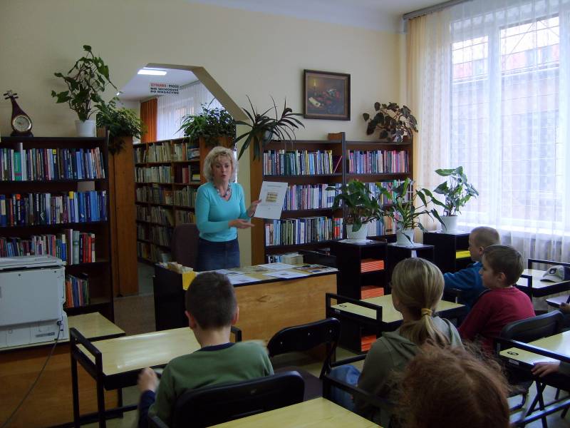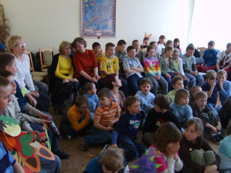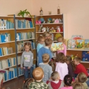 „W krainie baśni i fantazji” – bibliotekę odwiedziły dzieci z Przedszkola nr 7, zapoznano je z biblioteką dla dzieci, zaprezentowano atrakcyjne książeczki dla najmłodszych, były też zabawy i zagadki. Niespodziankę dla maluszków przygotowali uczniowie klasy IV a ze Szkoły Podstawowej nr 13, którzy zaprezentowali krótkie przedstawienie pt.”Baba Jaga”. Przedszkolakom bajkowa adaptacja bardzo się podobała, nagrodzili ją gromkimi brawami a młodym aktorom zaśpiewali piosenkę.