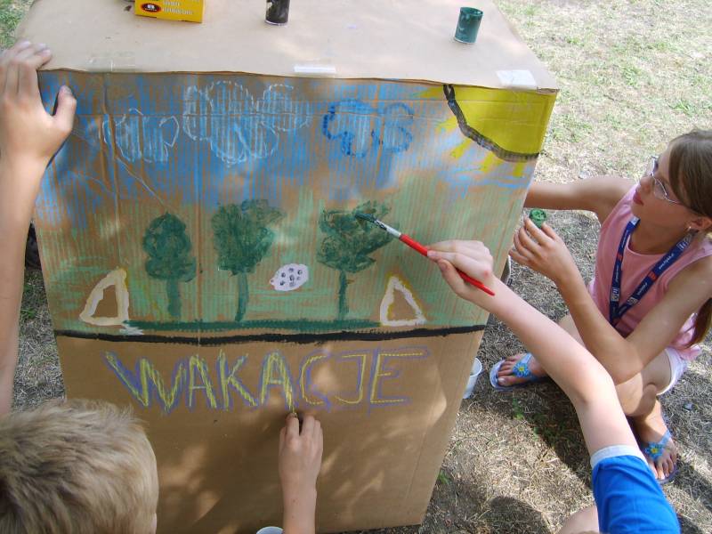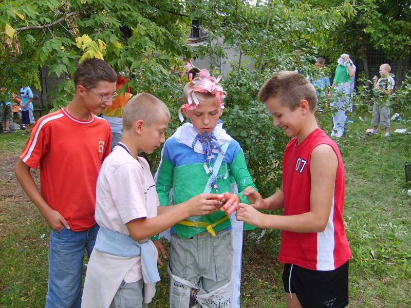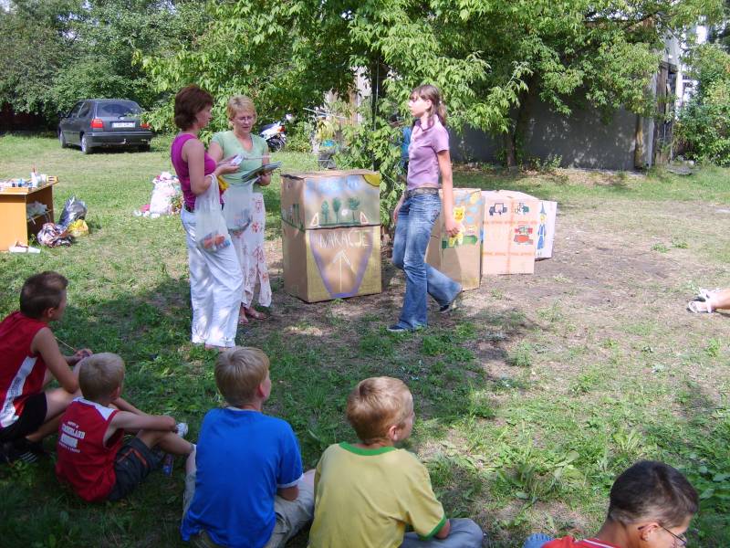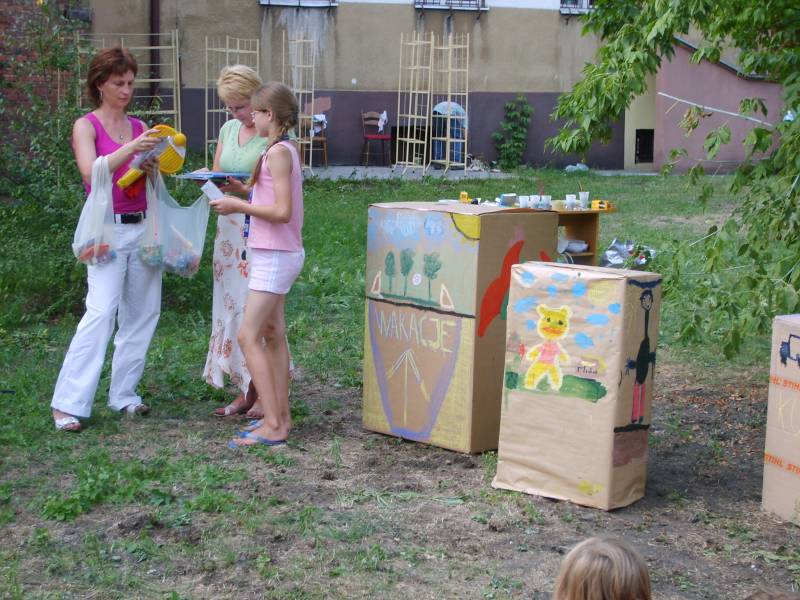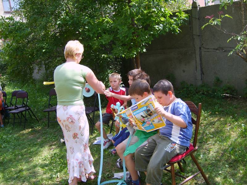Dzieci brały udział w konkursach sprawnościowych i plastycznych. Na dużych kartonach malowały bohatera ulubionej książki lub wakacje. Dobrze bawiły się też przy wykonywaniu stroju z gazet, papierowej taśmy i resztek materiałów. W przerwie dzieci poczęstowano napojami i słodyczami.