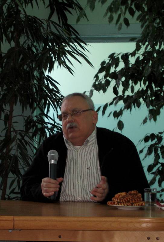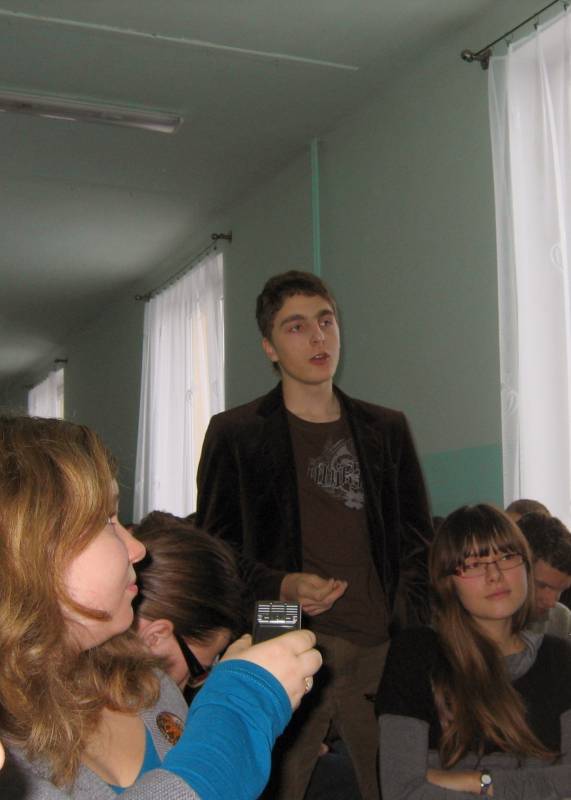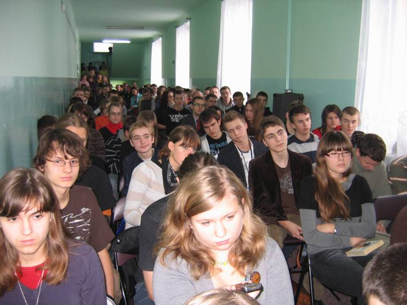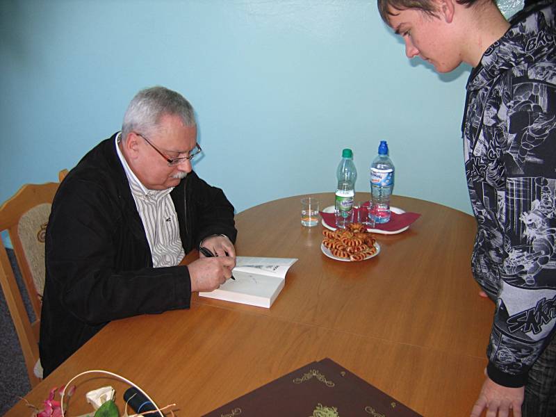 Frekwencja dopisała, na spotkanie z pisarzem licznie przybyła młodzież ze szkół gimnazjalnych i szkół średnich, czytelnicy naszej biblioteki, mieszkańcy miasta, przedstawiciele władz miasta i powiatu. Autor opowiadał o swoim warsztacie pracy, przytaczał śmieszne anegdoty z podwórka literatury fantasy, a także odpowiadał na pytania zadawane przez czytelników.