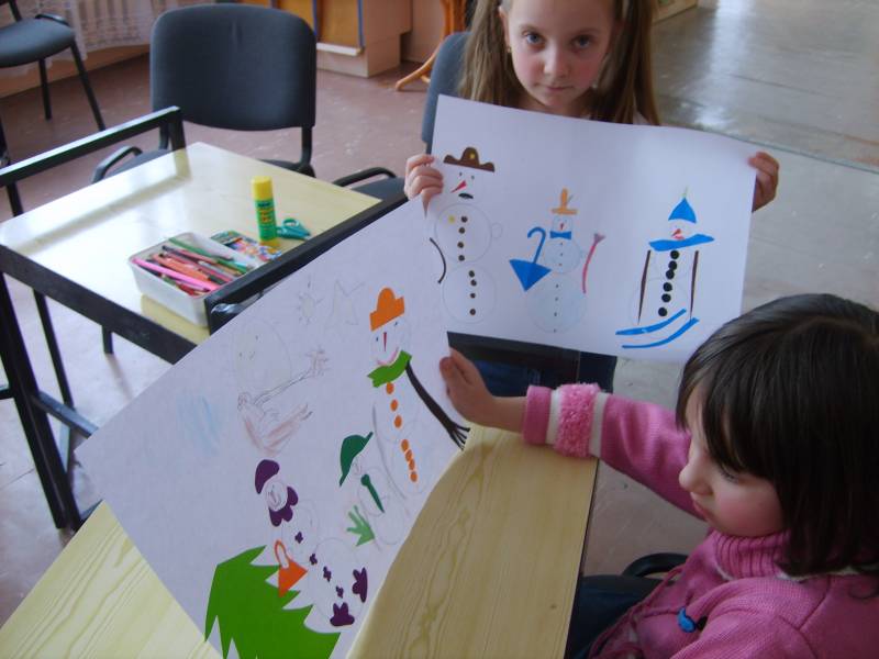 • „Zimowe ekspresje”, zajęcia plastyczne, na których uczestnicy wykonywali ilustracje z zimowym pejzażem.