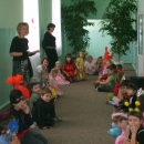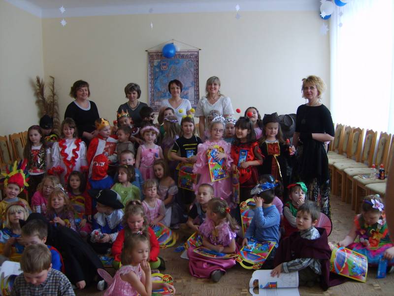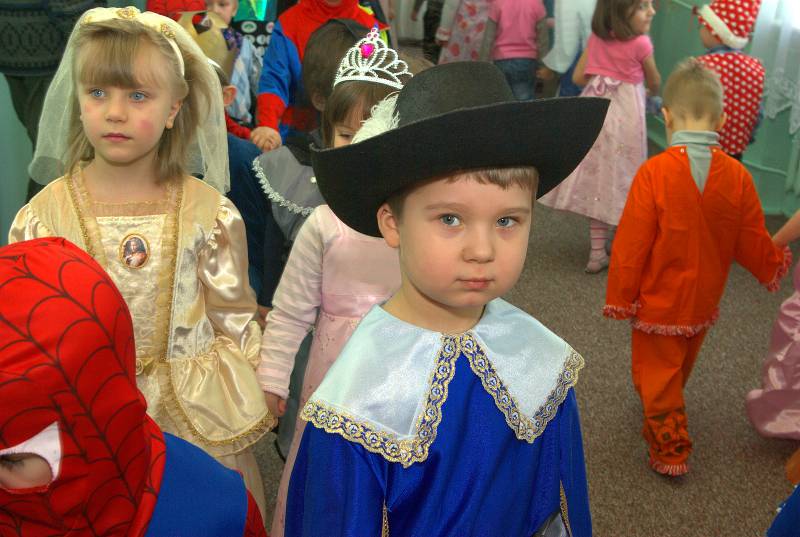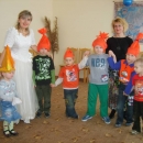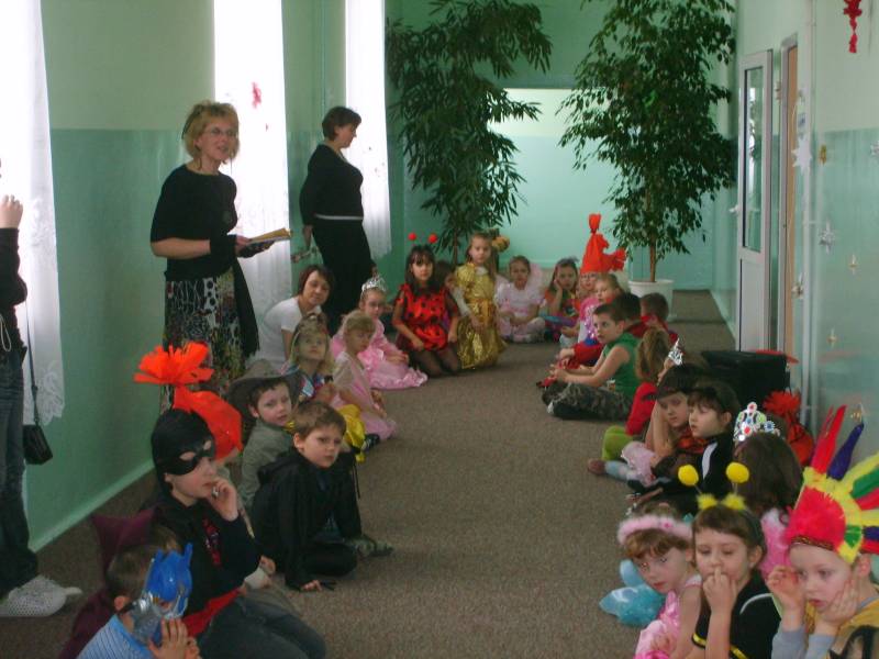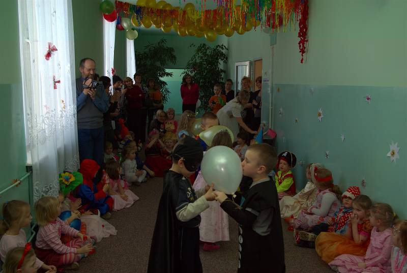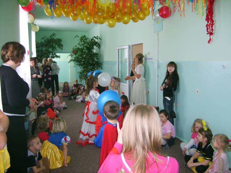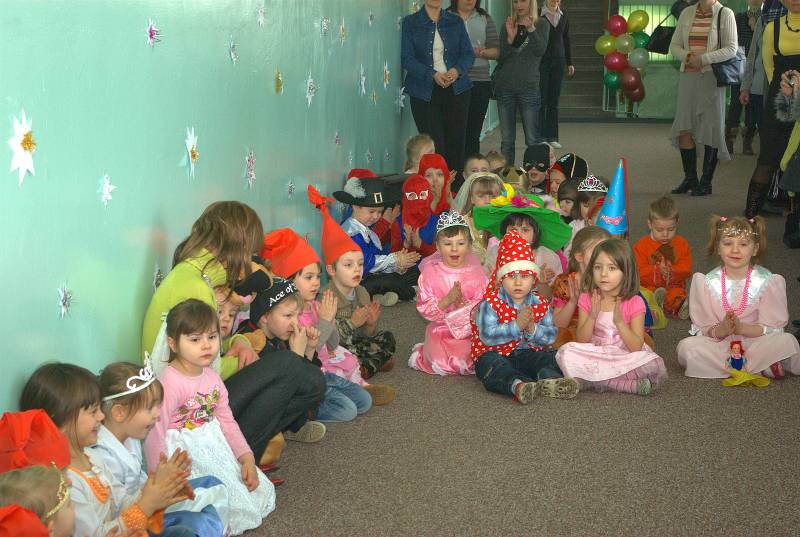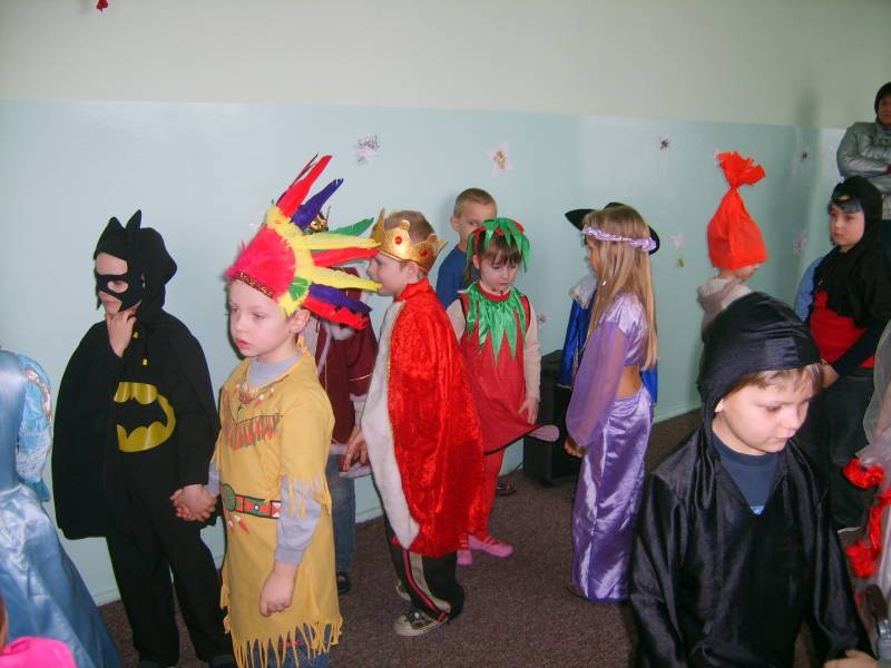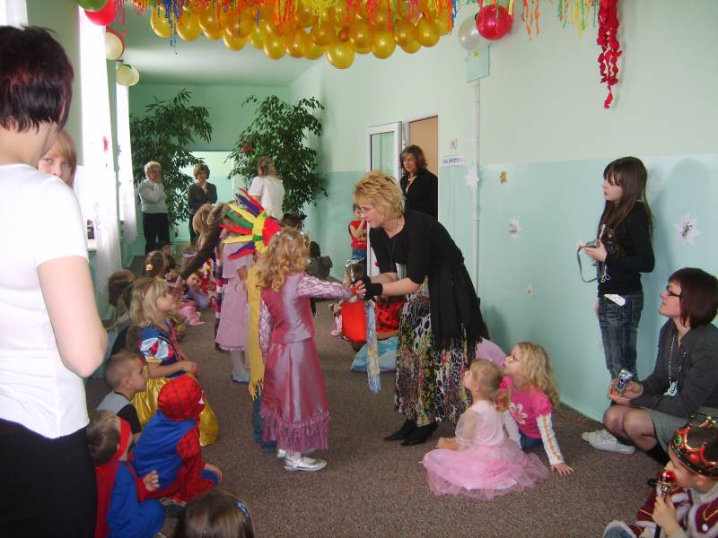 Na bal maluchy przybyły w pięknych karnawałowych strojach, były m.in. wróżki, księżniczki, rycerze, krasnoludki i wiele innych. Wszyscy zaprezentowali się podczas barwnego korowodu w rytm poloneza, który poprowadziły dobra wróżka i zła czarownica.