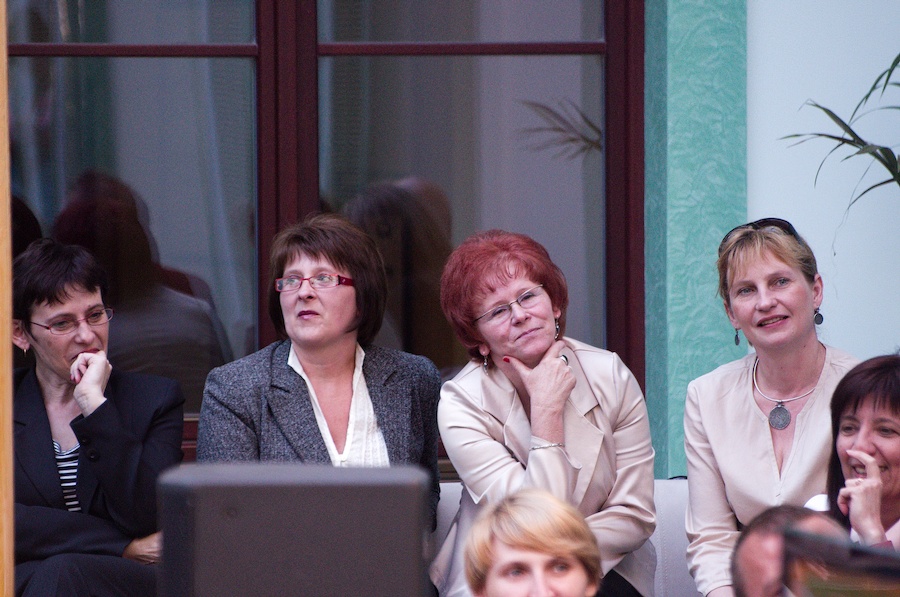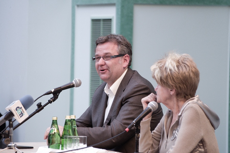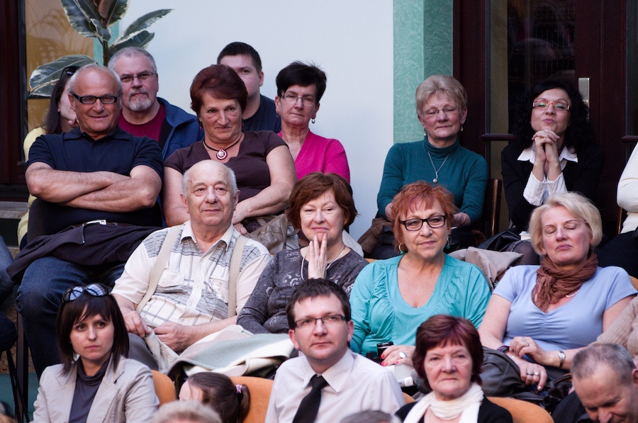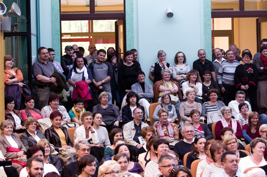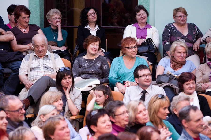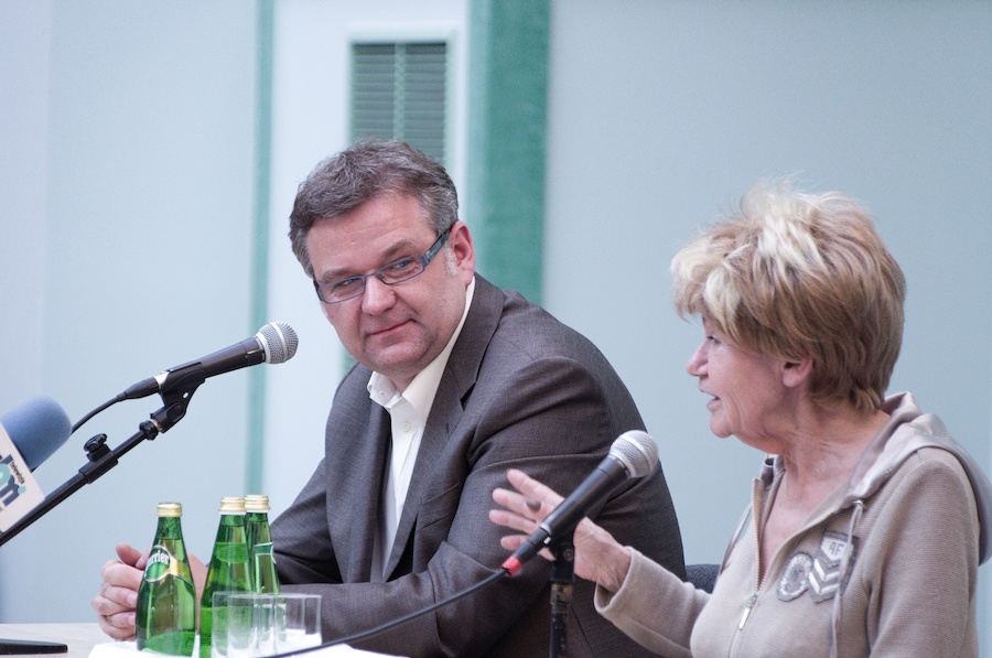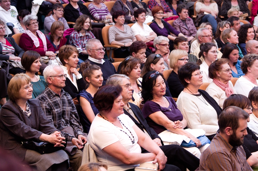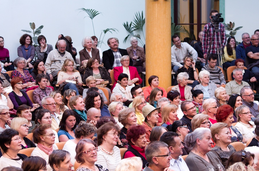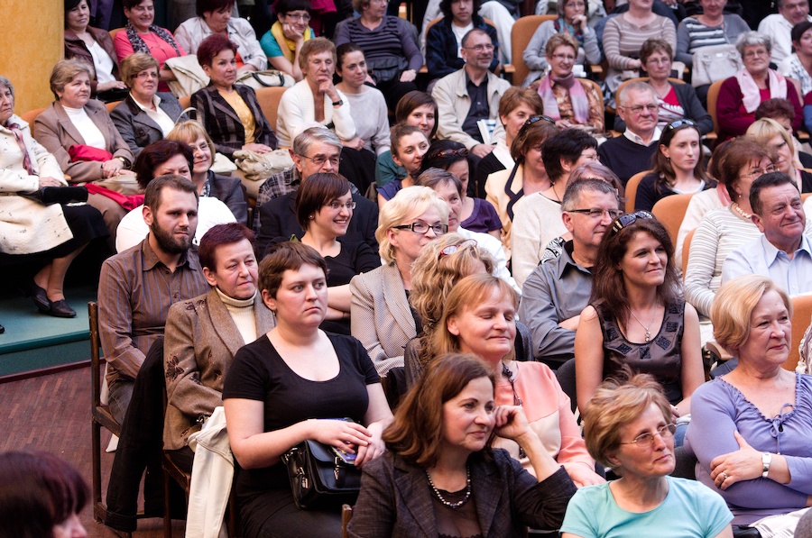 Oboje z ogromnym poczuciem humoru i dystansem do siebie i do świata, poruszali różne tematy, od starości, zmarszczek , „nienachalnej urody” i dojrzałości pani Marii, przez jej podróże, aż po tematy sportowe m.in. związane z EURO 2012 (nawiasem mówiąc pani Maria została „fanką-kibicem” drużyny Korona Kielce). Jednym słowem – mnóstwo anegdot, dużo błyskotliwego humoru, salwy śmiechu i gromkie brawa, tak wyglądało spotkanie autorskie z Marią Czubaszek i Arturem Andrusem, na które przybyło około 370 osób