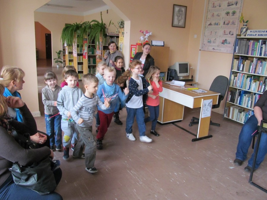 W dniach 26, 27, 28 i 31 marca Bibliotekę odwiedziły przedszkolaki z Przedszkola „Baby World” oraz Przedszkola nr 6 i 7. Dzieci wysłuchały opowiadania „O krasnoludku, który chciał być elfem” Moniki Maciewicz i fragmentów poematu „Skarb” autorstwa J. R. R. Tolkiena. Później bawiły się przy muzyce i rysowały wymyślone postacie. Starsze przedszkolaki uczestniczyły w niebezpiecznej wyprawie w głąb Śródziemia, której celem był tajemniczy skarb. Oczywiście nie obeszło się bez konfrontacji ze strzegącym go Smokiem.
