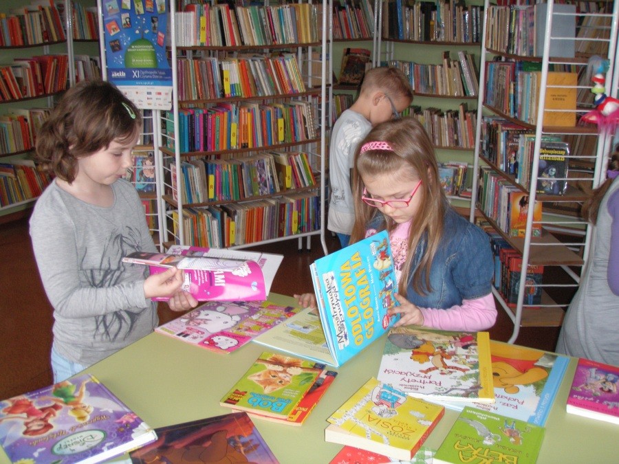 W dniach 8 i 9 maja w czasie trwania Ogólnopolskiego Tygodnia Bibliotek, który w tym roku obchodzimy pod hasłem „Czytanie łączy pokolenia” do oddziału dla dzieci i młodzieży przy ul. Towarowej 20 zaproszeni zostali uczniowie klas I i II SP 1 z wychowawcami panią Dorotą Witek i panią Renatą Fiedorowicz. Uczniowie uczestniczyli w zajęciach bibliotecznych przygotowujących do korzystania z Oddziału dla Dzieci. Dzieci zapoznały się z zasadami wypożyczania książek i korzystania z czytelni oraz z rozmieszczeniem książek na półkach. Obejrzały również wystawkę książek ciekawie wydanych.