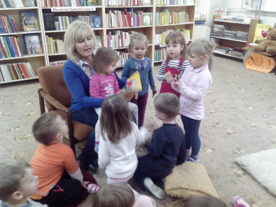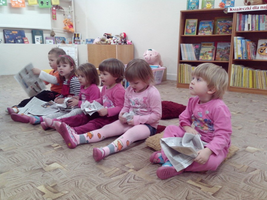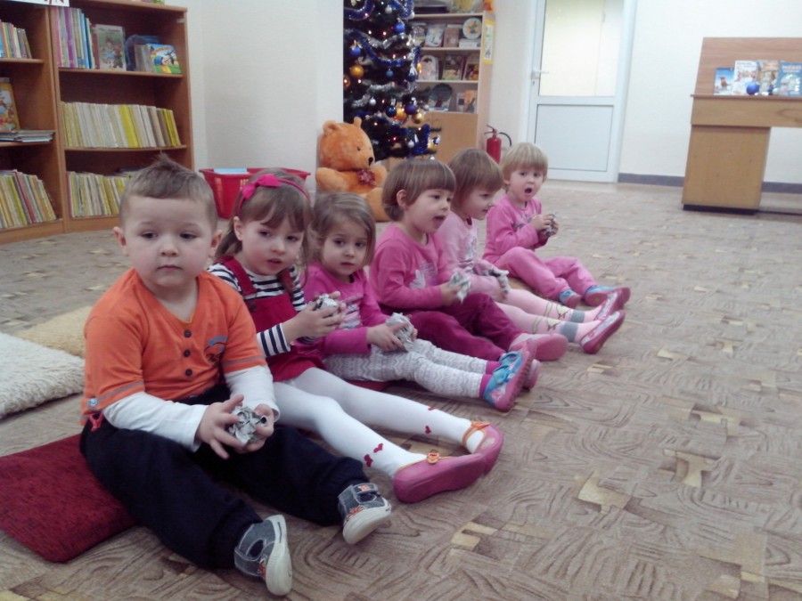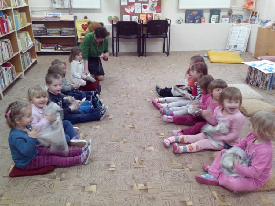 Grupy: „Krasnoludki” i „Słoneczka” uczestniczyły w spotkaniu z książką. Przedszkolakom czytano bajki z pacynkami min. „Śpiąca Królewna” – w związku z przypadającym w 2015 r. Rokiem Polskiego Teatru Publicznego. Były też zimowe zgadywanki, rzuty kulą i gigantyczne zaspy do pokonania. Bałwankowe wiersze, zabawy i piosenki umiliły maluchom spotkanie w Oddziale Dziecięcym F.2 Biblioteki.