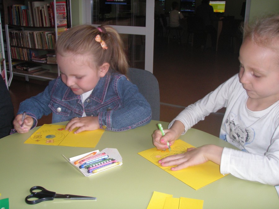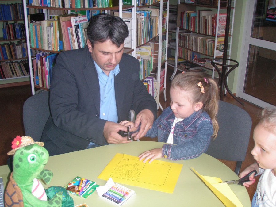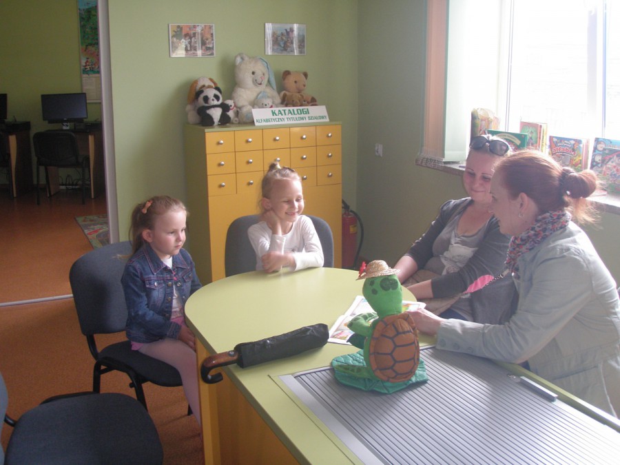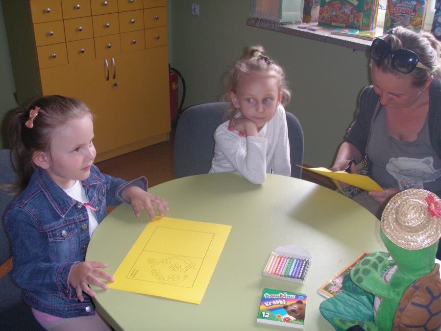 22 maja w bibliotece dla dzieci przy ul. Towarowej 20 spotkali się sympatycy zielonego żółwika Franklina. Dzieci wysłuchały opowiadania przeczytanego przez bibliotekarza pt. „Franklin mówi KOCHAM CIĘ”, w którym Franklin szukał pomysłu na prezent dla mamy w dniu jej święta. Dzieci podpowiadały żółwikowi, co może zrobić oraz mówił, co same mogą zrobić dla swoich mam w dniu zbliżającego się ich święta – 26 maja, żeby podkreślić jak bardzo je kochają. Gdy już wszystkie pomysły się wyczerpały dziewczynki wykonały kolorowe laurki. W zabawie uczestniczyli rodzice, którzy chętnie pomagali swoim pociechom.