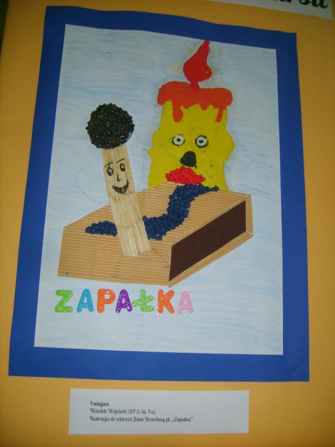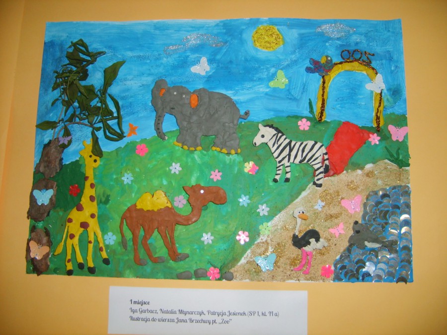 Prace zostały wykonane różnymi technikami plastycznymi. Pierwsze miejsce zajęły ex aequo dwie ilustracje wykonane do wierszy Jana Brzechwy pt. „Zoo” i „Zapałka”. Pierwszą z prac wykonały uczennice klasy II „a” Szkoły Podstawowej nr 1 – Iga Garbacz, Natalia Młynarczyk i Patrycja Jesionek. Drugą nagrodzoną pracę („Zapałka”) wykonał Wojciech Niziołek, uczeń klasy I „a” Szkoły Podstawowej nr 5.