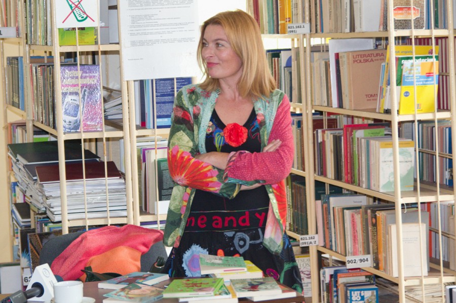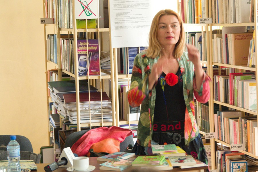 Na pytanie skąd bierze pomysły na fabułę, pisarka przyznała, że wiele z nich czerpie z własnego dzieciństwa, inne wpadają jej do głowy podczas codziennych czynności, takich jak praca w ogrodzie czy spacery w lesie. Inspiracją dla niej często były również jej trzy córki i ich koleżanki. Aktywne uczestnictwo dzieci ze szkół ( SP 8 i SP 13) było widoczne… łącznie z „prezentem dla autorki” – deklamacją wiersza Jana Brzechwy „Po rozum do głowy” w wykonaniu Kuby.