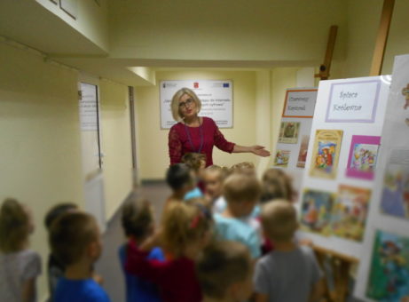Obejrzały również wystawę pt. „Bajkowy Świat” poświęconą twórczości bajkopisarza Charlesa Perraulta, rozpoznając na ilustracjach postacie z takich książek jak: Czerwony Kapturek, Śpiąca Królewna, Tomcio Paluszek, Kot w butach i inne.