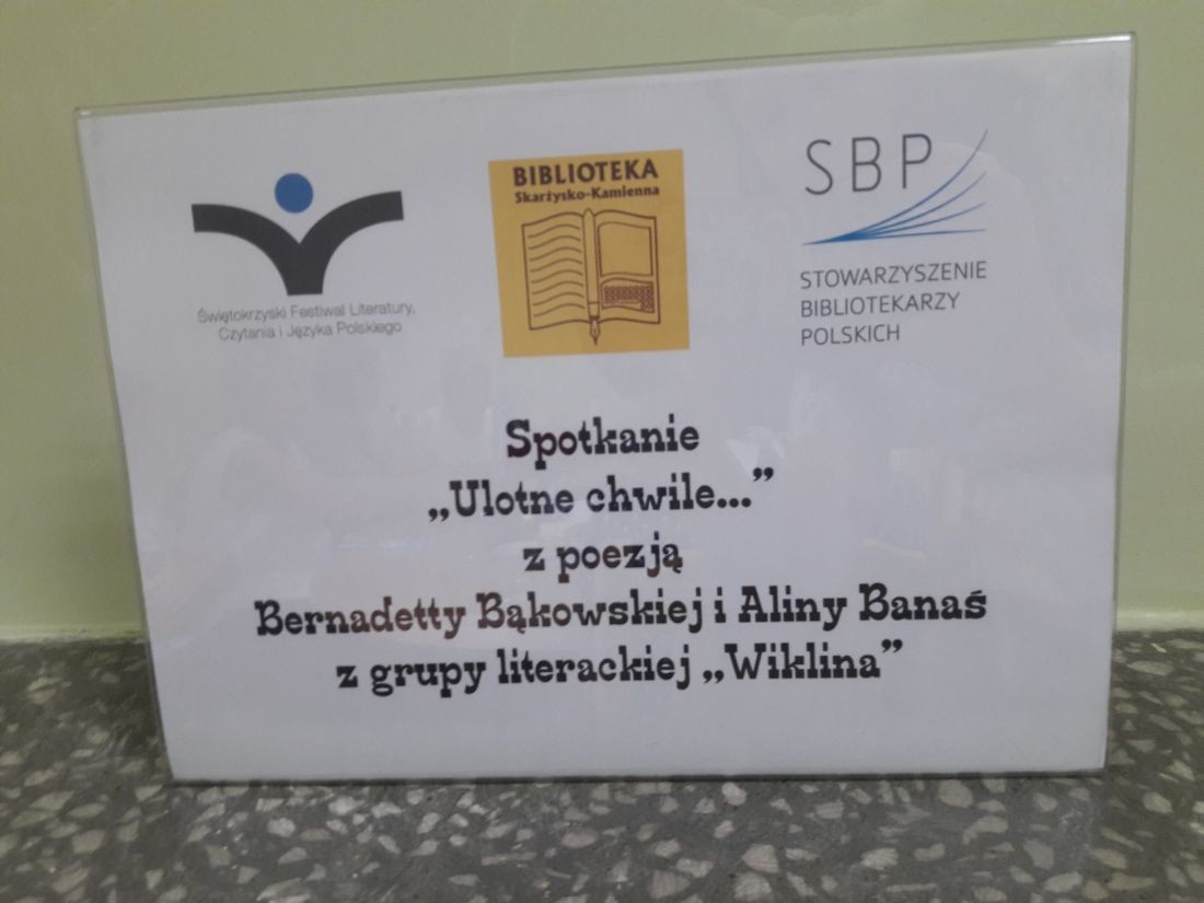 4 czerwca br. w ramach trwającego „Świętokrzyskiego Festiwalu Literatury, Czytania i Języka Polskiego” (4-8. 06.2018), w Filii nr 1 przy ul. Towarowej odbyło się spotkanie pt. „Ulotne chwile…” z poezją p. Bernadetty Bąkowskiej i p. Aliny Banaś, współpracujących z Grupą Literacką „Wiklina”.