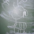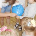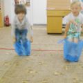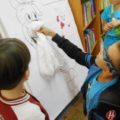 „RYMUJEMY Z KOZIOŁKIEM”– muzyczne gry i zabawy odbywające się w Oddziale dziecięcym Filii nr 2 w każdą środę. Dzieci na tych zajęciach rysują portret koziołka mając przewiązane chustą oczy. Podejmują próby golenia i doczepienia brody koziołkowi oraz naśladują brykania z koziołkiem i skoki przez przeszkody.