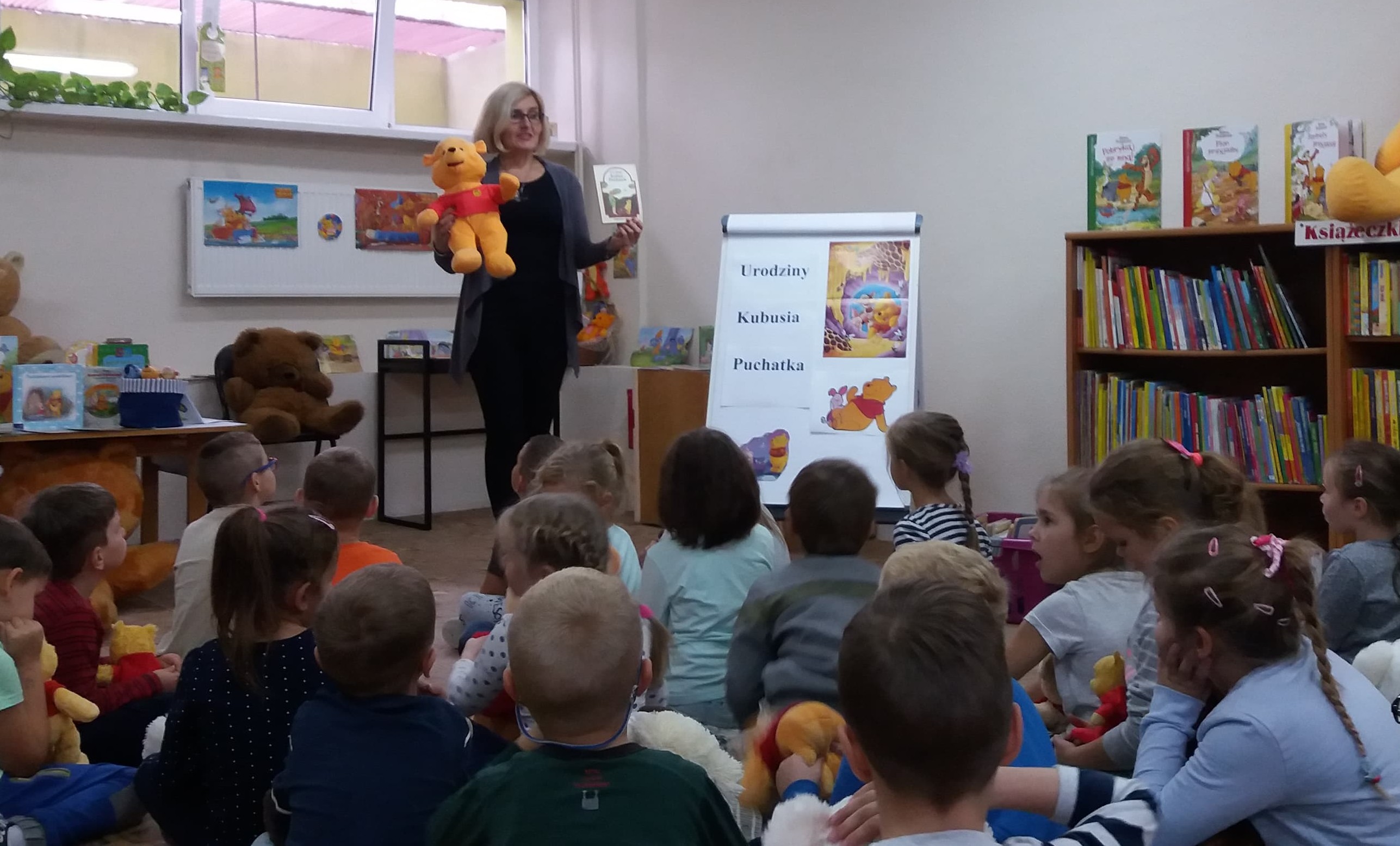 W dniach 22, 23, 24 i 30 października 2018 r. z okazji 92 urodzin Kubusia Puchatka filia nr 2 Powiatowej i Miejskiej Biblioteki Publicznej zorganizowała dla przedszkolaków imprezę czytelniczą. W zajęciach uczestniczyły trzy grupy z Przedszkola nr 16 i grupa z Przedszkola nr 7 .