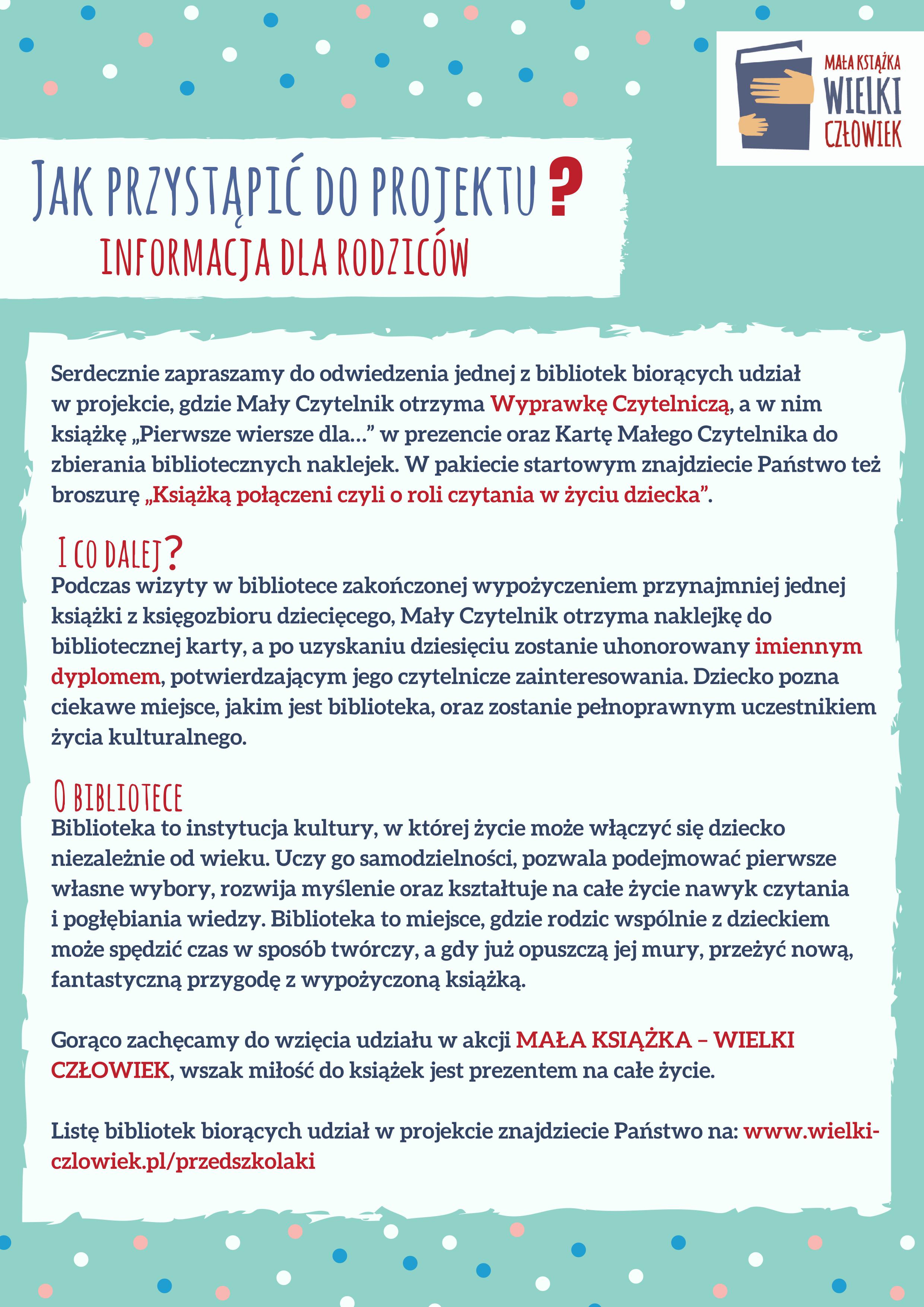 Serdecznie zapraszamy do naszej biblioteki i do udziału w projekcie wszystkich Małych Czytelników i ich rodziców.