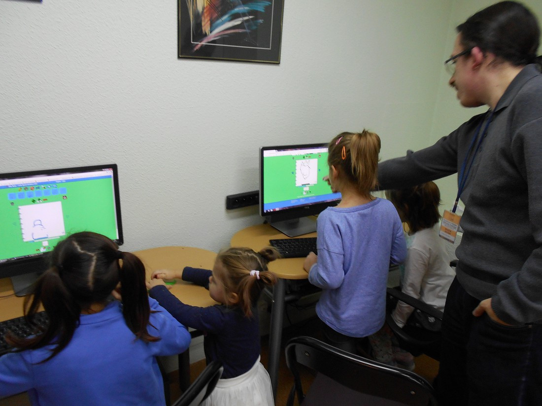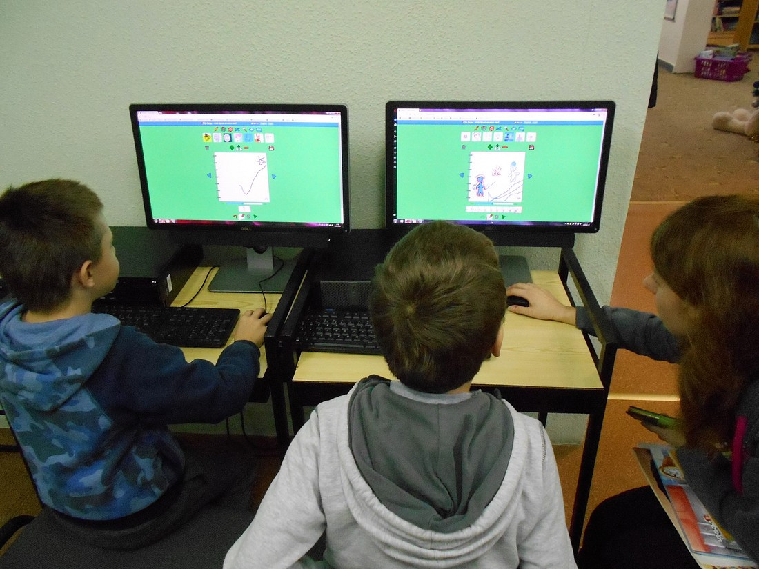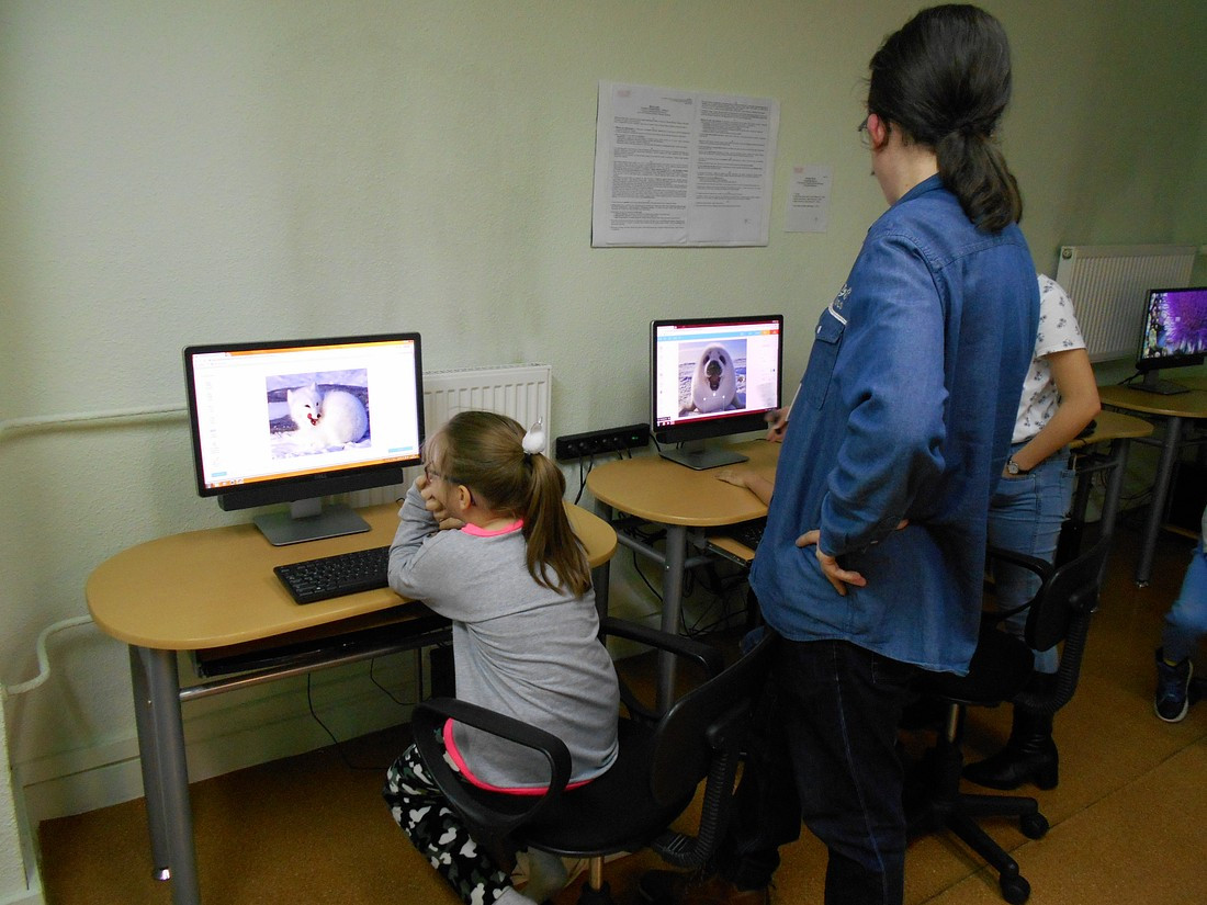 W tegoroczne ferie zimowe biblioteka wzbogaciła swoją ofertę o zajęcia z wykorzystaniem nowoczesnych technologii i Internetu. W ogólnodostępnych darmowych programach graficznych uczestnicy zajęć w bibliotece dziecięcej Filii nr 2 przy ul. Sezamkowej uczyli się jak tworzyć plakaty i wykonywać animowane rysunki zwane gifami. Oczywiście gify były o tematyce zimowej.