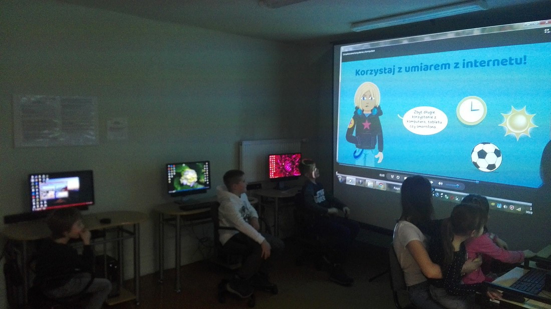 W drugi tydzień ferii zorganizowano dla chętnych dzieci zajęcia na bazie projektu edukacyjnego prowadzonego przez Fundację Dajemy Dzieciom Siłę i Fundację Orange, w ramach programu „Dziecko w sieci”. Tematem zajęć było bezpieczeństwo dzieci online oraz profilaktyka zagrożeń wobec dzieci w internecie. Podczas zajęć uczestnicy byli powiadamiani i uczulani na najczęściej występujące w sieci zagrożenia takie jak: zawieranie znajomości online, umieszczanie zdjęć w Internecie, hejt, cyberprzemoc i inne.