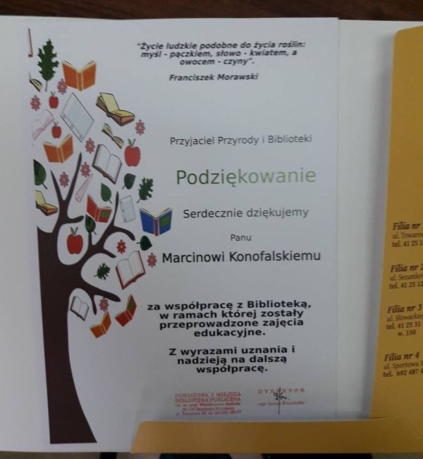 Dlatego Filia nr 1 Biblioteki Publicznej przy ul. Towarowej zorganizowała spotkanie z panem Marcinem Konofalskim – referentem ds. ochrony lasu i edukacji z Nadleśnictwa Skarżysko.