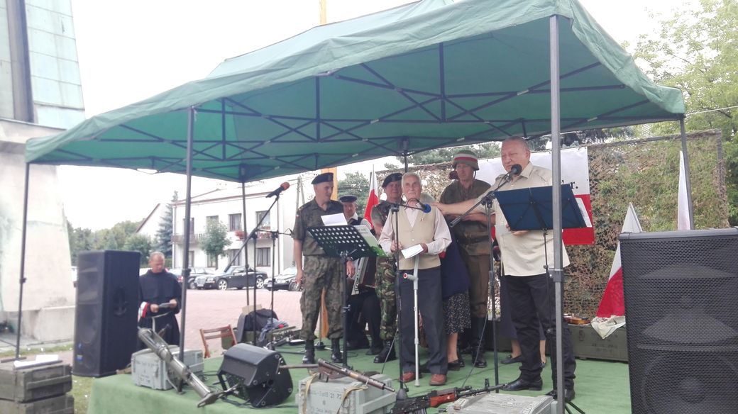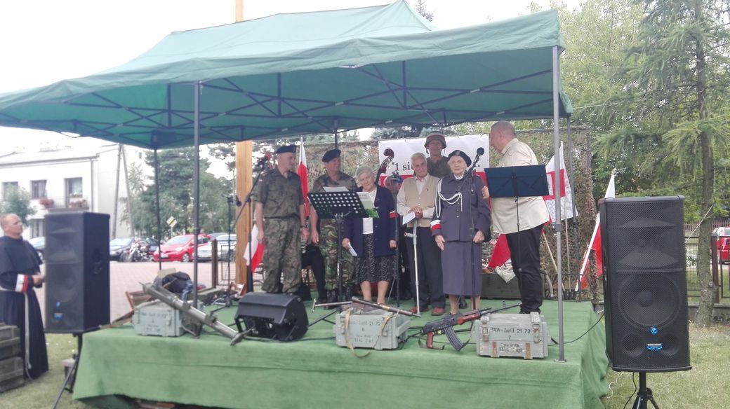 Kwadrans przed 17 zebranych na placu przy Klasztorku powitali, Proboszcz Parafii Niepokalanego Poczęcia Najświętszej Maryi Panny Rafał Kołodziejski, Dyrektor naszej Biblioteki Iwona Kowaleska i Prezydent Skarżyska – Konrad Krönig. Uroczystość zaszczycił swoją obecnością Marszałek Województwa Świętokrzyskiego – Andrzej Bętkowski. Punktualnie, w Godzinę „W”, przy dźwiękach syren oddano hołd Powstańcom, a minutę później odśpiewano Hymn Polski. Śpiew piosenek powstańczych prowadził Leszek Steć przy akompaniamencie kapeli działającej przy ośrodku patriotycznym Civitas Polonia. Biblioteka chcąc ułatwić zebranym włączenie się do wspólnego śpiewu, przygotowała 200 sztuk śpiewników z najpopularniejszymi piosenkami walczącej Warszawy.