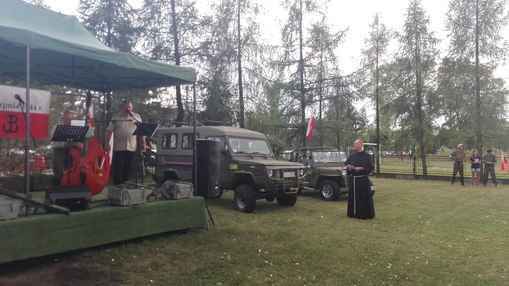 O godzinie 18 rozpoczęła się uroczysta Msza święta w intencji ofiar Powstania Warszawskiego celebrowana przez o. Rafała. Homilię na niej wygłosił o. Jacek Szczepanik, który dzień wcześniej, 31 lipca, uczestniczył w Warszawie, na Wojskowych Powązkach, w pogrzebie kpt. Ryszarda Białousa „Jerzego”, dowódcy słynnego Harcerskiego Batalionu „Zośka”. O. Jacek zwrócił jednocześnie uwagę na ważną rolę jaka stoi przed młodymi w budowaniu mostów pamięci między pokoleniami. Wizualnym wzruszającym symbolem takiej więzi pokoleń, może być zapamiętana przez o. Jacka chwila, gdy 90-letnia dziś sanitariuszka Harcerskiego Batalionu „Zośka”, Lidia Ziental „Lidka”, stała przy trumnie swojego dowódcy, kpt. Białousa, wsparta na ramieniu młodego żołnierza Wojska Polskiego.