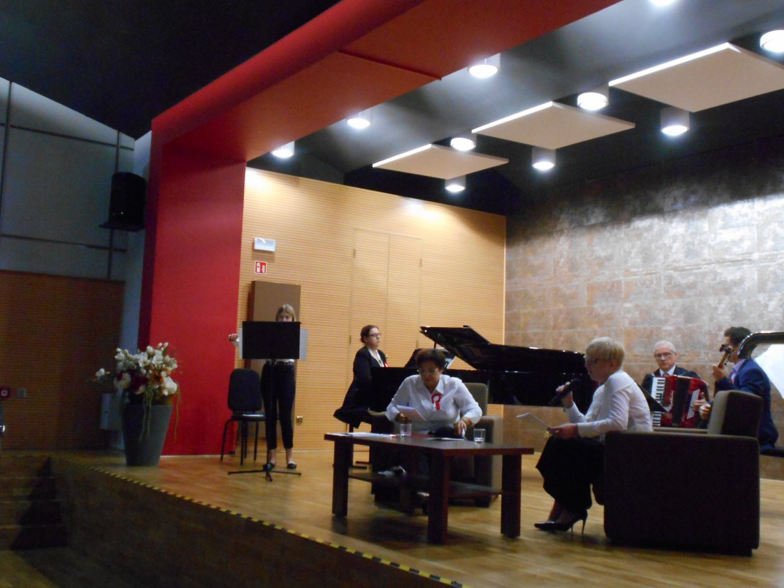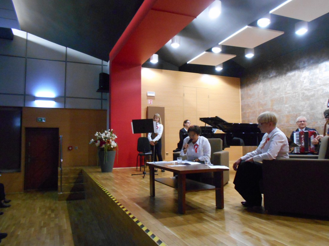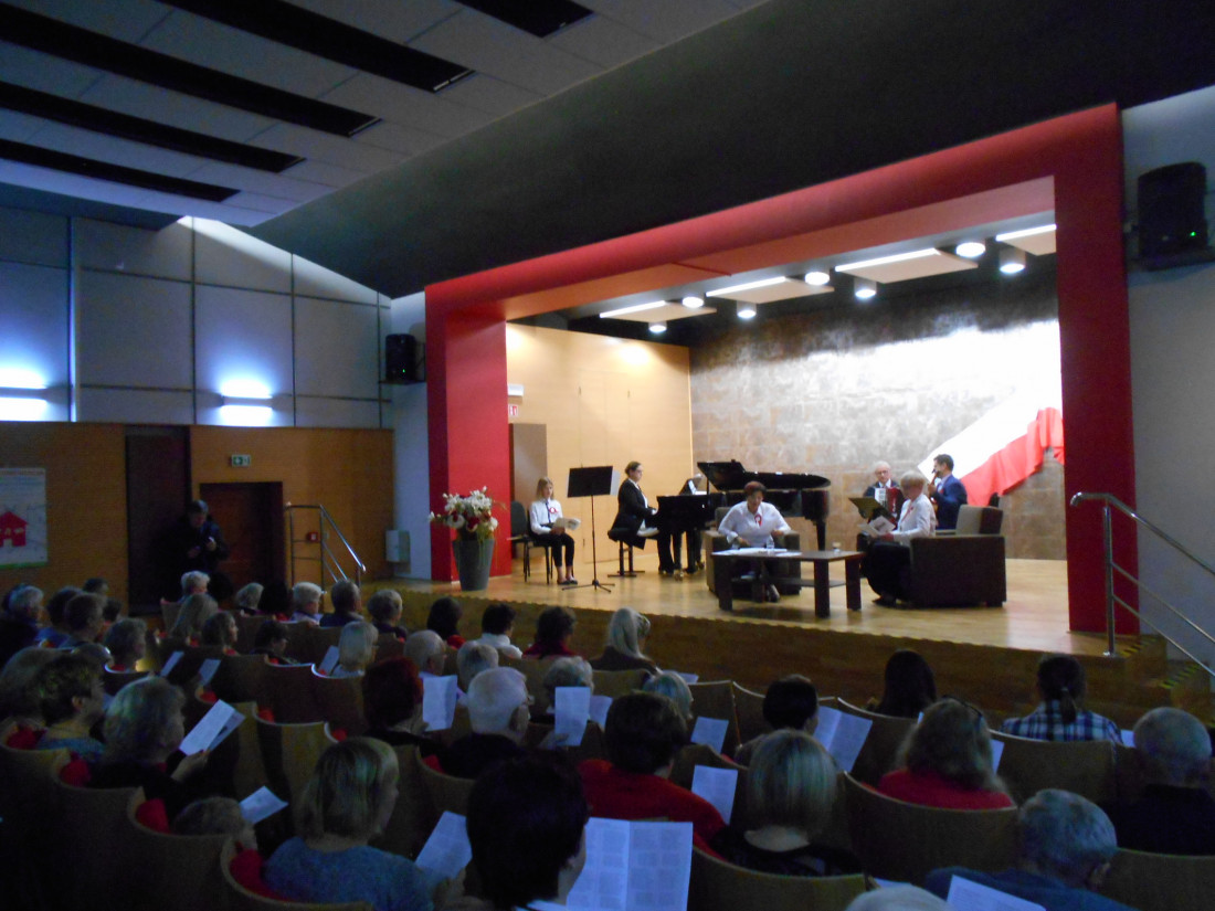 Każdy z uczestników otrzymał śpiewnik, wykonany na tę okoliczność przez pracownika naszej Biblioteki i pomysłodawcy imprezy – p. Piotra Salwę. Odśpiewano łącznie z hymnem 16 utworów w pełnej wersji, zawierających czasem po 16 zwrotek. Obecni na koncercie mieli też możliwość pochwalić się swoim głosem indywidualnie. Na zakończenie Maria Walczak wykonała na skrzypcach nostalgiczny utwór „Oni wrócili” puentujący koncert, bo nic tak dobrze jak melodia, nie przenosi w czasie i nie wraca wspomnień. Nasze pokolenie zna wspomnienia walk o niepodległość tylko z literatury, a melodie i piosenki doskonale uzupełniają tę wiedzę, oddając ducha tamtych czasów.