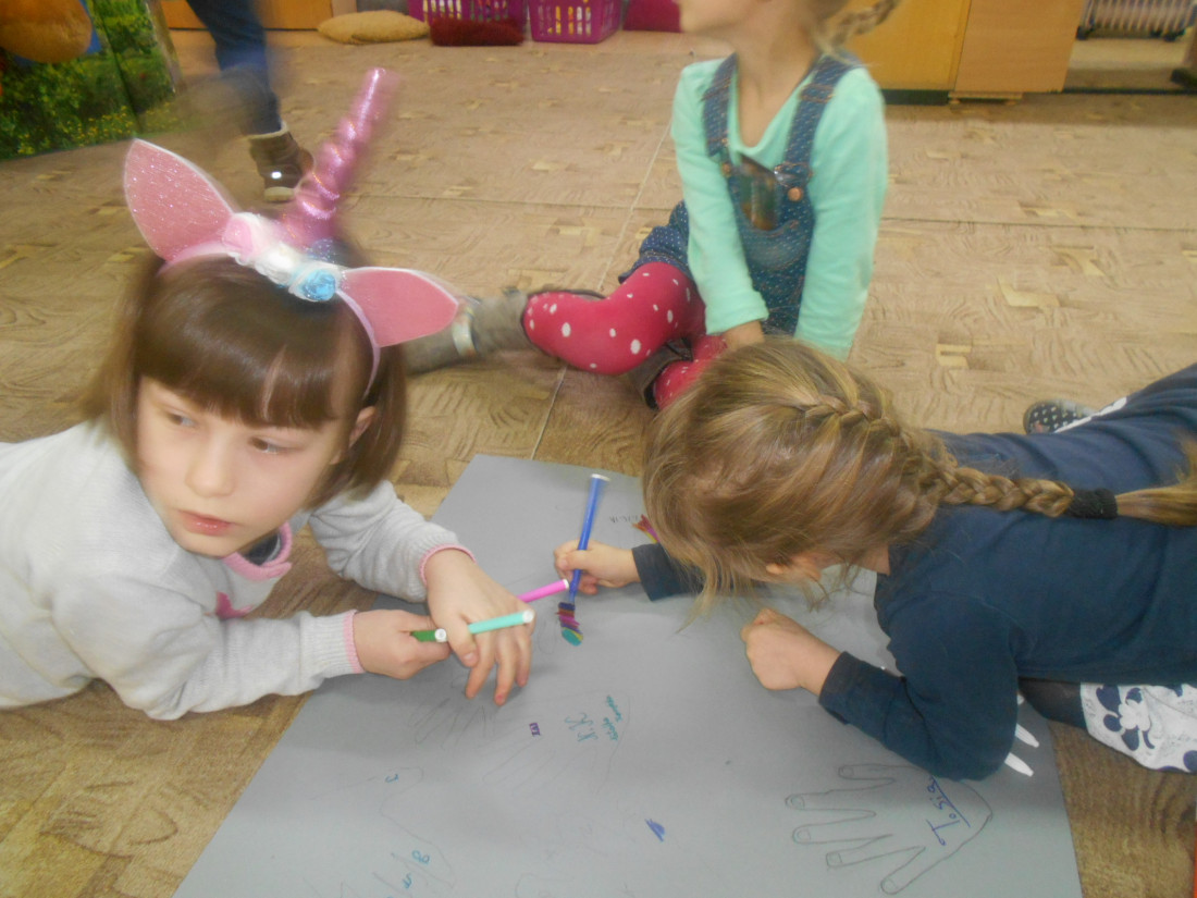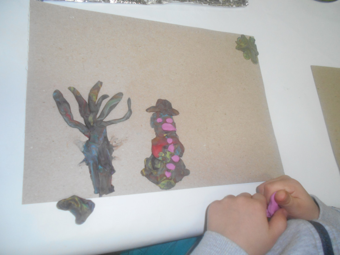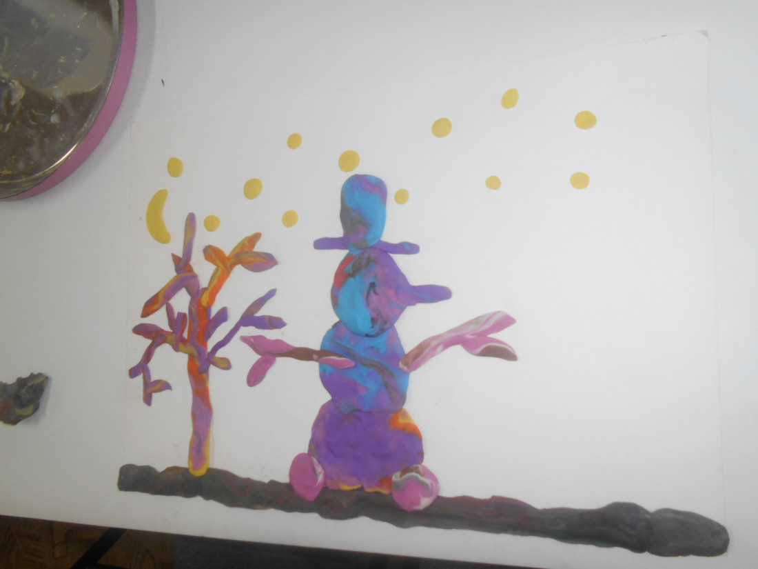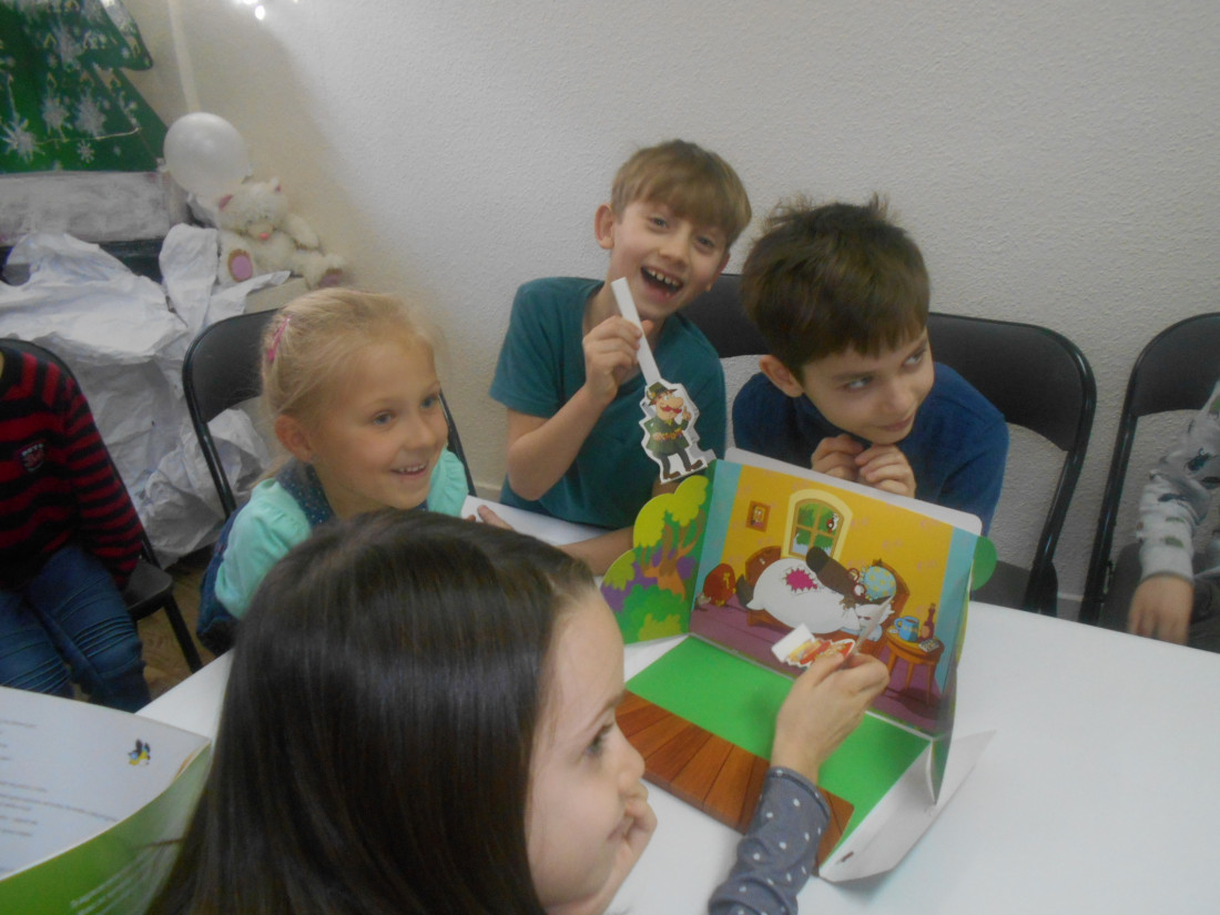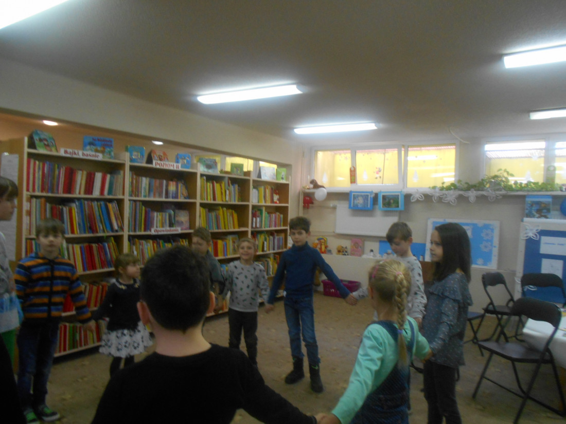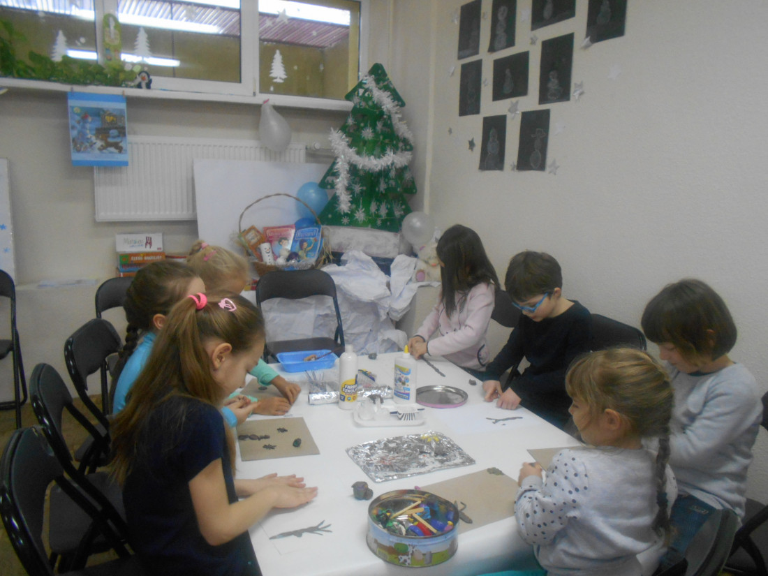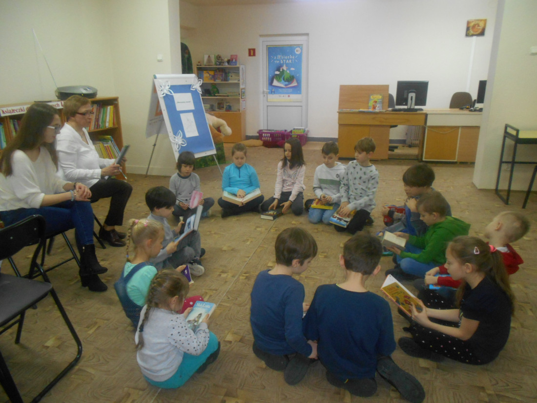 Drugi tydzień ferii w Oddziale dziecięcym przy ulicy Sezamkowej rozpoczęliśmy od zgaduj-zgaduli, na dzieci czekały baśniowe zgadywanki. Podczas zajęć plastycznych malowały na podkładzie z folii aluminiowej farbą plakatową tworząc zimową galerię prac plastycznych. Natomiast bałwanek ulepiony w magicznej kuli ze słoika powędrował z dziećmi do domu. Dzieci bawiły się w teatr poznając jego ważne funkcje, wcielały się w role, odgrywając różne scenki z bajki o Czerwonym Kapturku, z ciekawością uczestniczyły w zabawie kalambury w formie pantomimy.