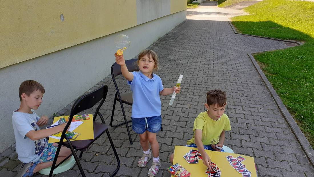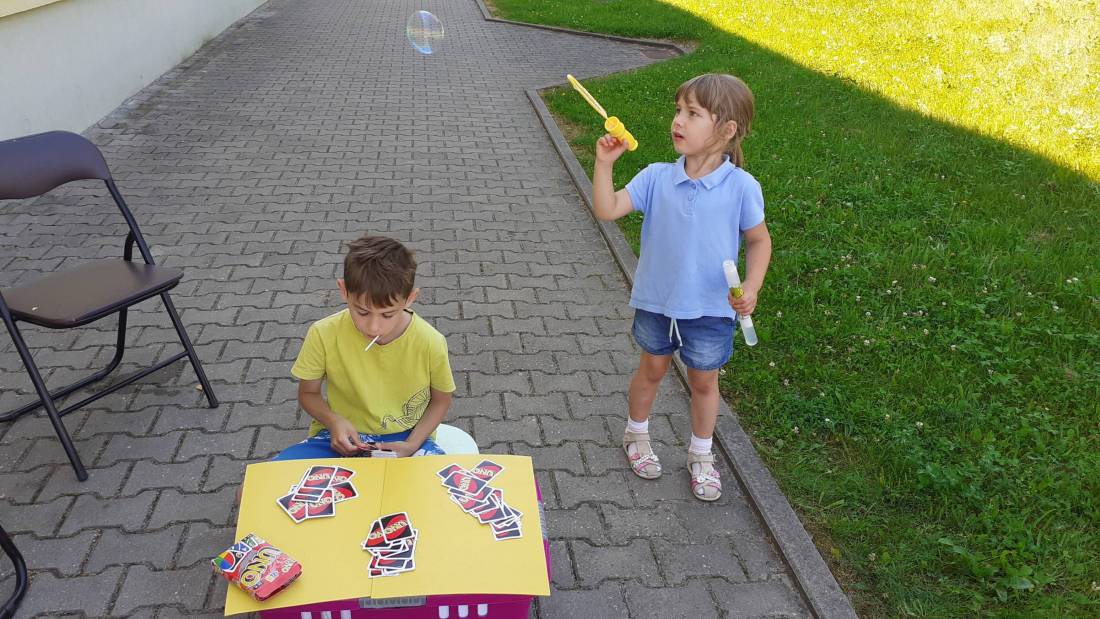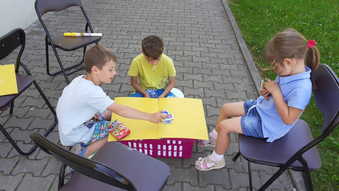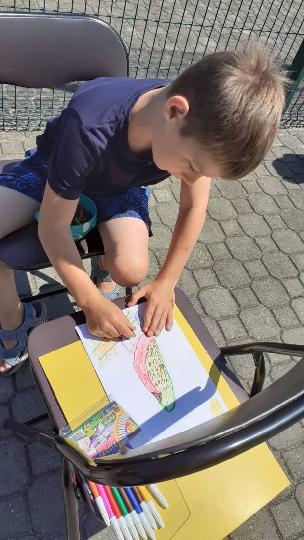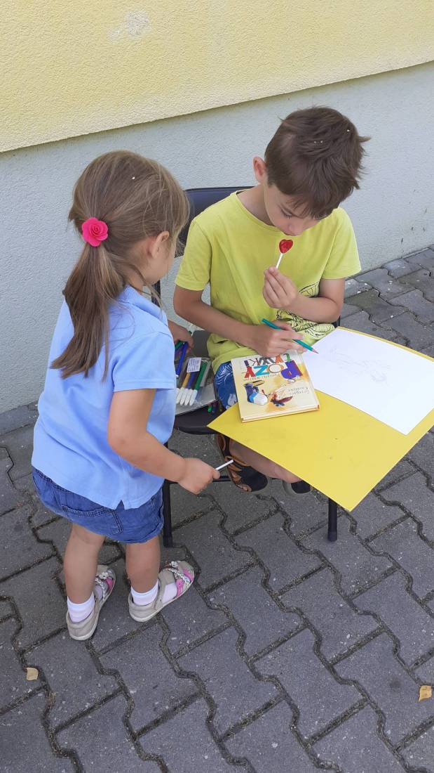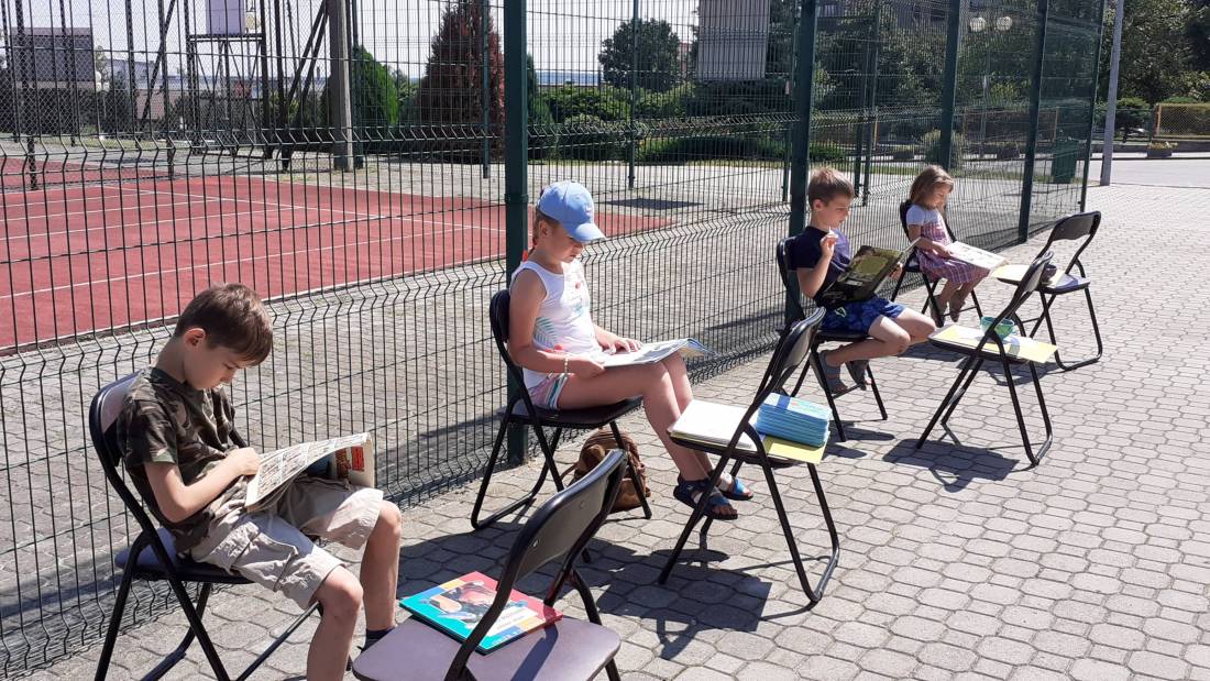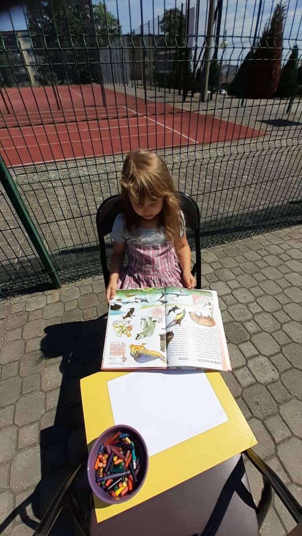 Wakacje w bibliotece dziecięcej przy ul. Sezamkowej ze względu na czas pandemii oraz nowe zasady funkcjonowania Biblioteki, odbywały się w plenerze i z ograniczoną liczbą uczestników.
