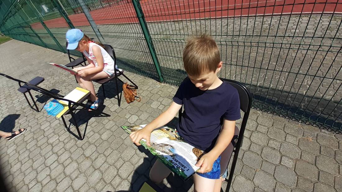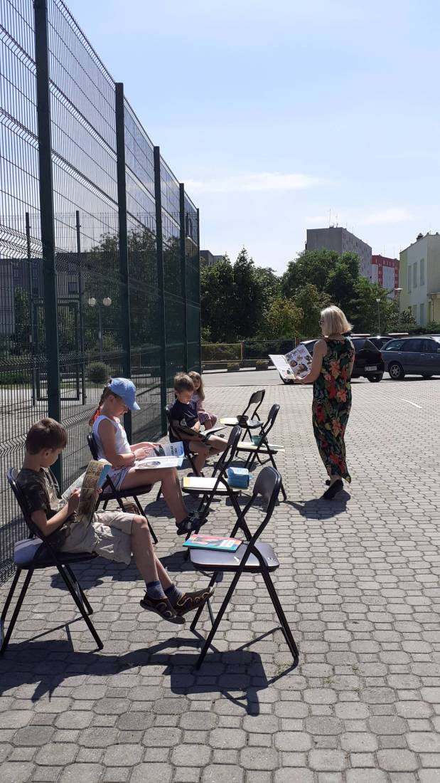 Zajęcia literackie i plastyczne, rozwiązywanie łamigłówek, zagadek detektywistycznych oraz gry i zabawy miały miejsce w plenerze, na placu przed Biblioteką.