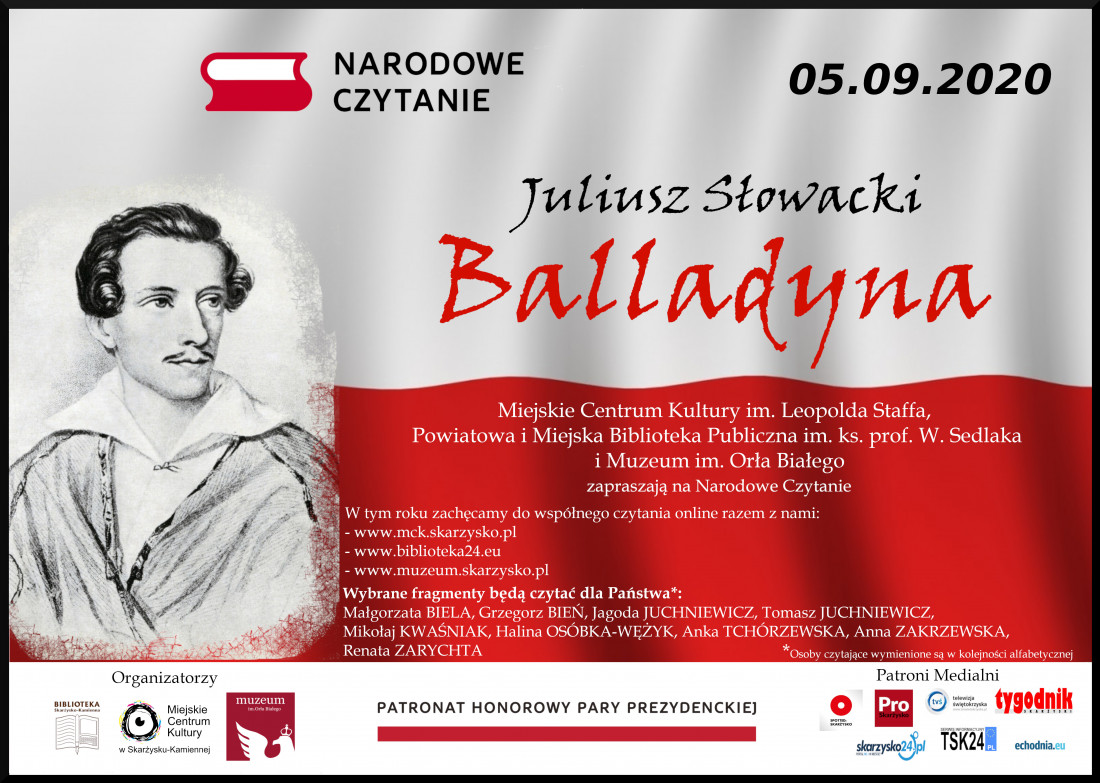 Kierując się tymi zaleceniami Powiatowa i Miejska Biblioteka Publiczna im. ks. prof. W. Sedlaka, Miejskie Centrum Kultury im. L. Staffa i Muzeum im. Orła Białego zapraszają Skarżyszczan do wspólnego czytania „Balladyny” online, na stronach: