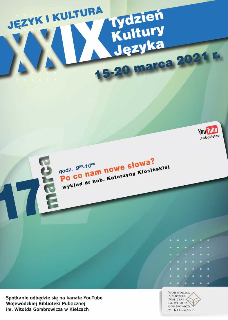 Współorganizatorem tegorocznej edycji w województwie świętokrzyskim jest Wojewódzka Biblioteka Publiczna w Kielcach, która zaprasza Państwa do uczestnictwa w wykładach językoznawców. Będą one zamieszczone na kanale You Tube.