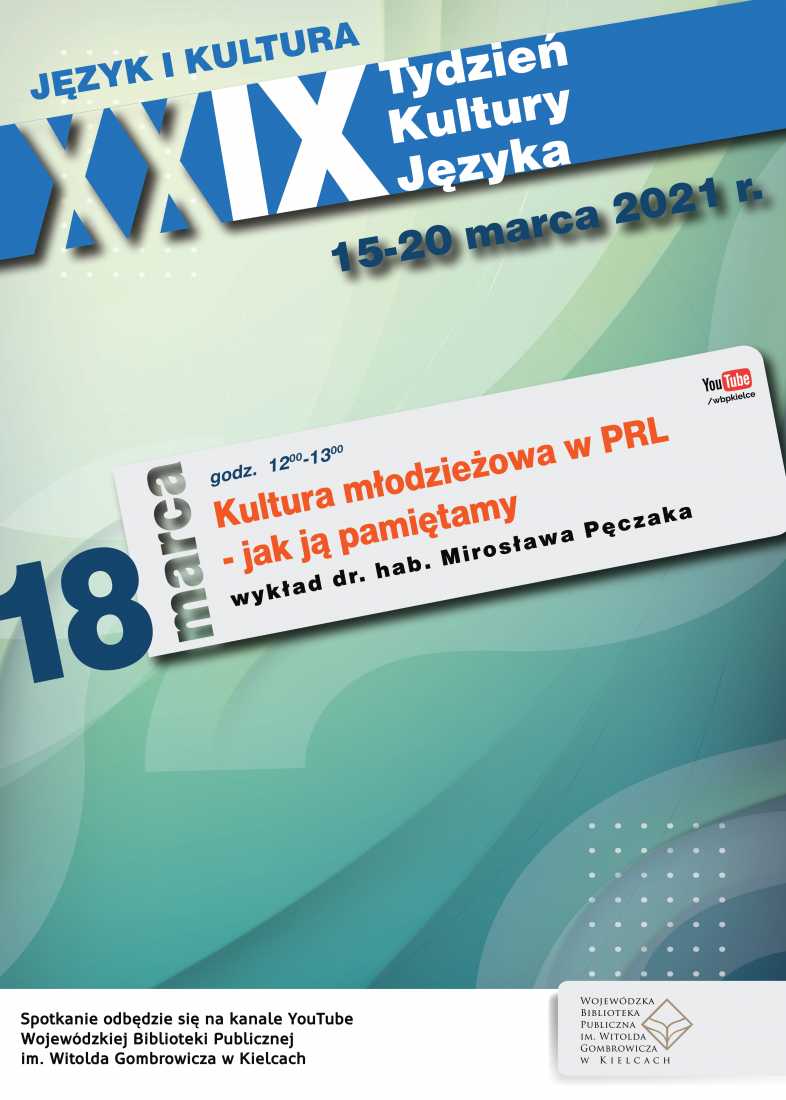 18 marca – Kultura młodzieżowa w PRL – jak ją pamiętamy? – wykład poprowadzi doktor habilitowany Mirosław Pęczak o godz. 12.00 do 13.00