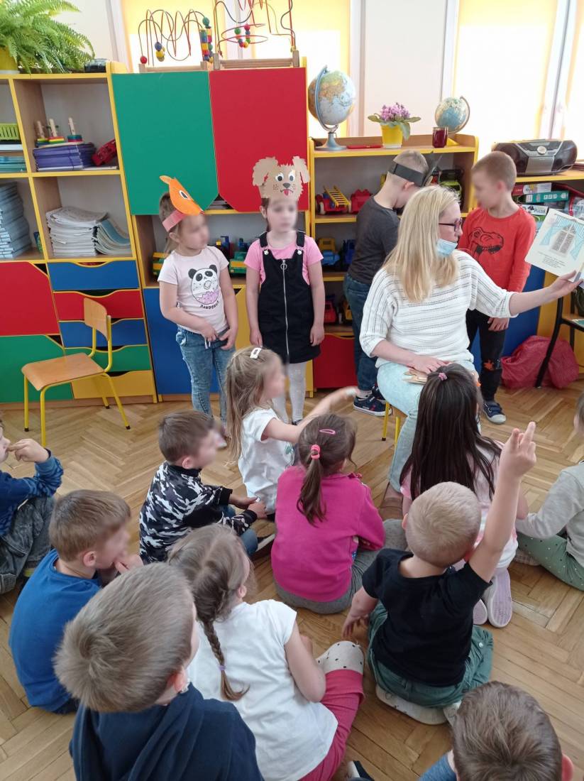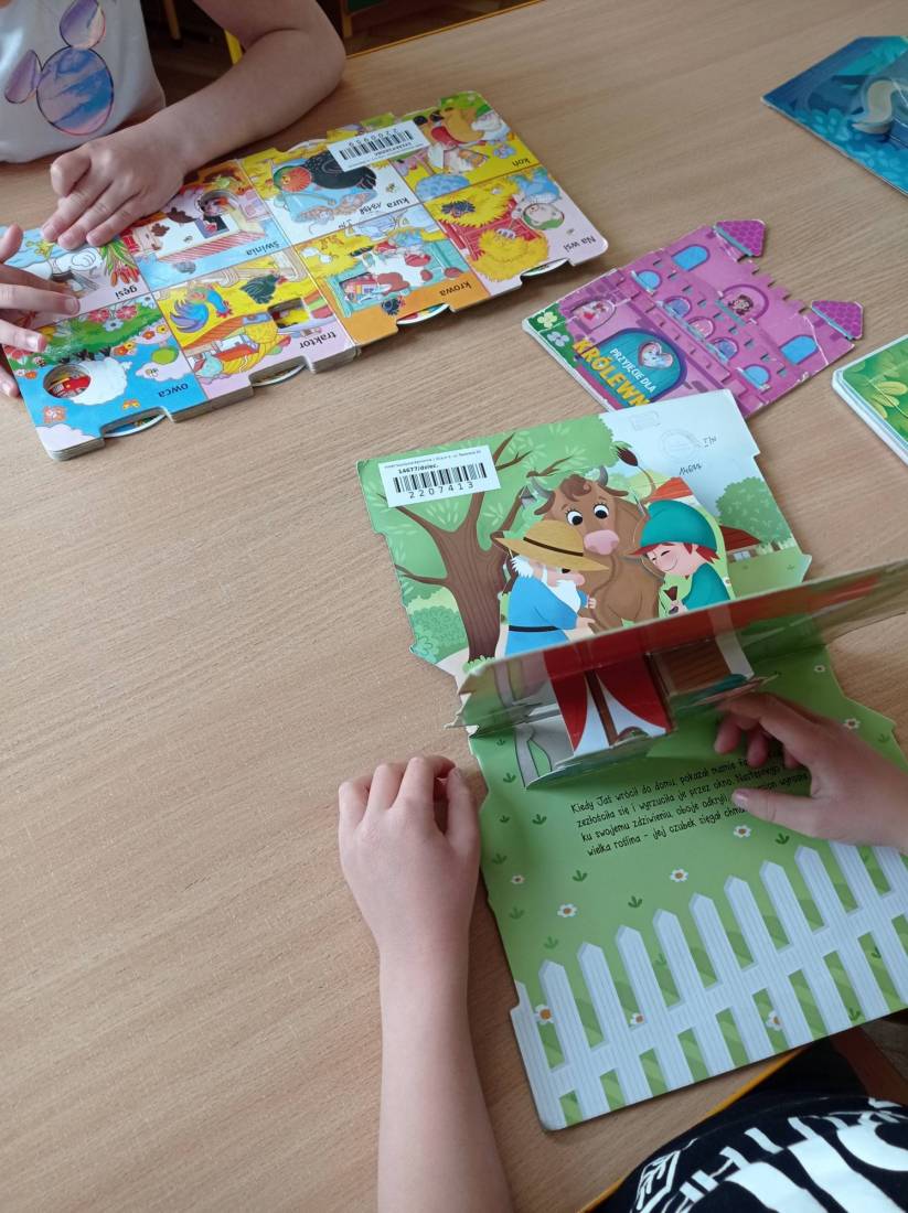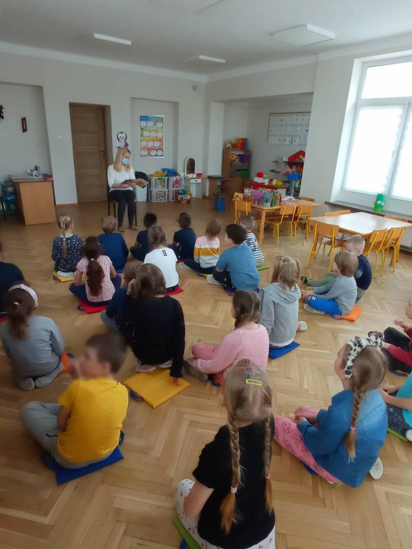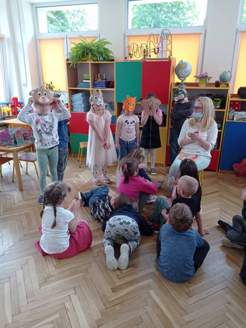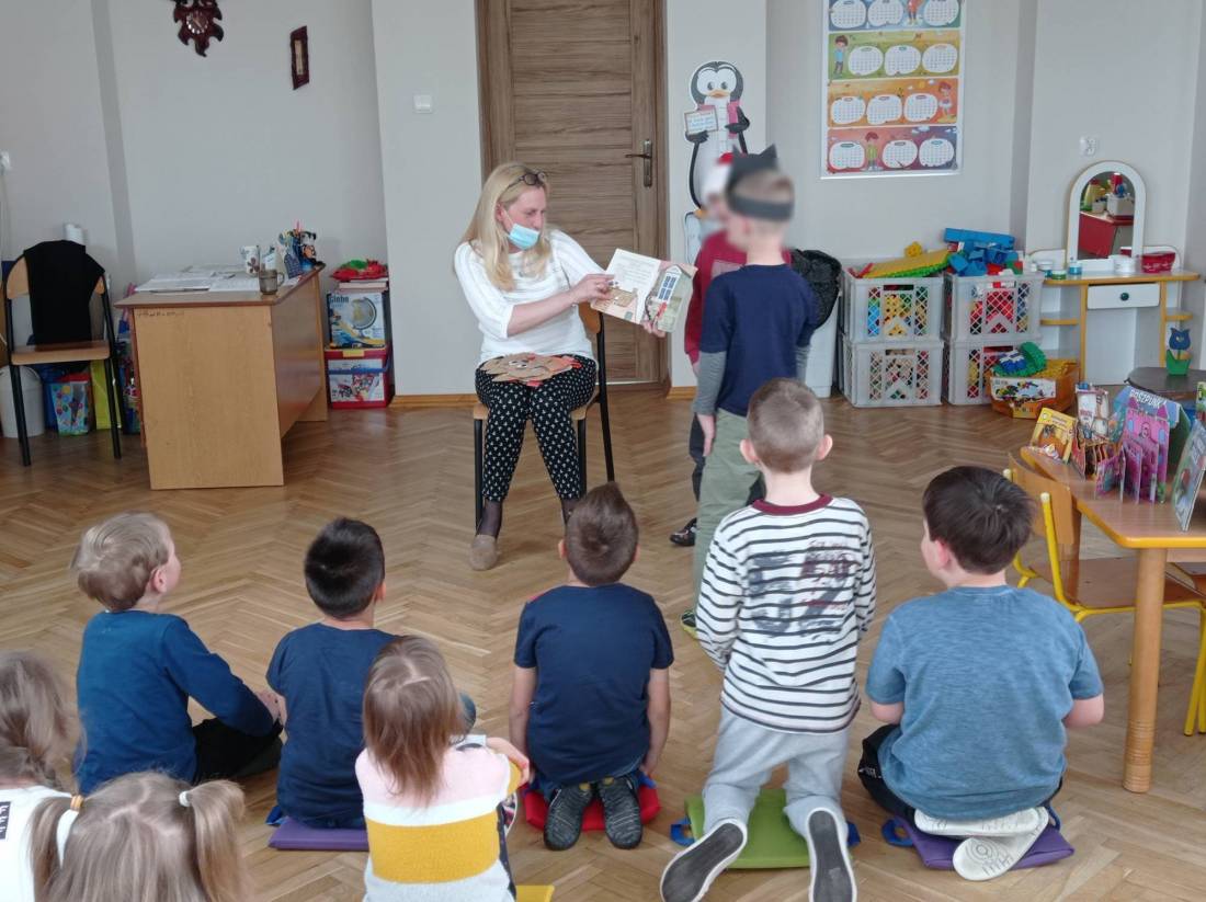 Natomiast słuchając opowiadania Heleny Bechlerowej pt.: „Otwórz okienko” dzieci próbowały dokonać przemiany w bohaterów występujących w tym opowiadaniu. Muchomorki, Słoneczka i Motylki – grupy przedszkolne chętnie oglądały książeczki ciekawie wydane, odgadywały bajkowe zagadki i malowały plastusiową kolorowankę.