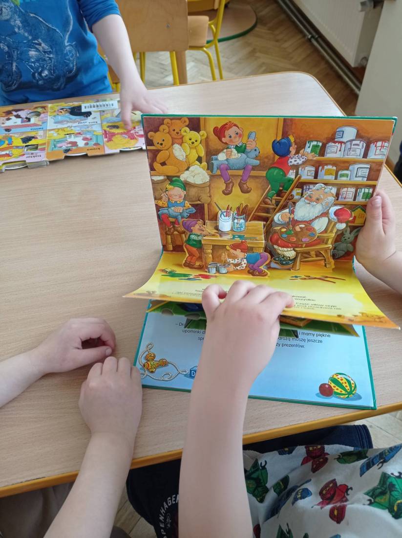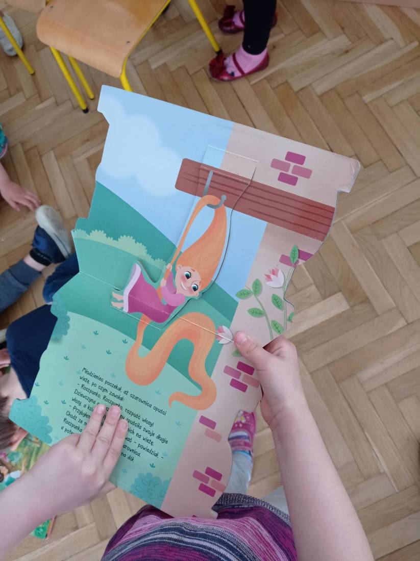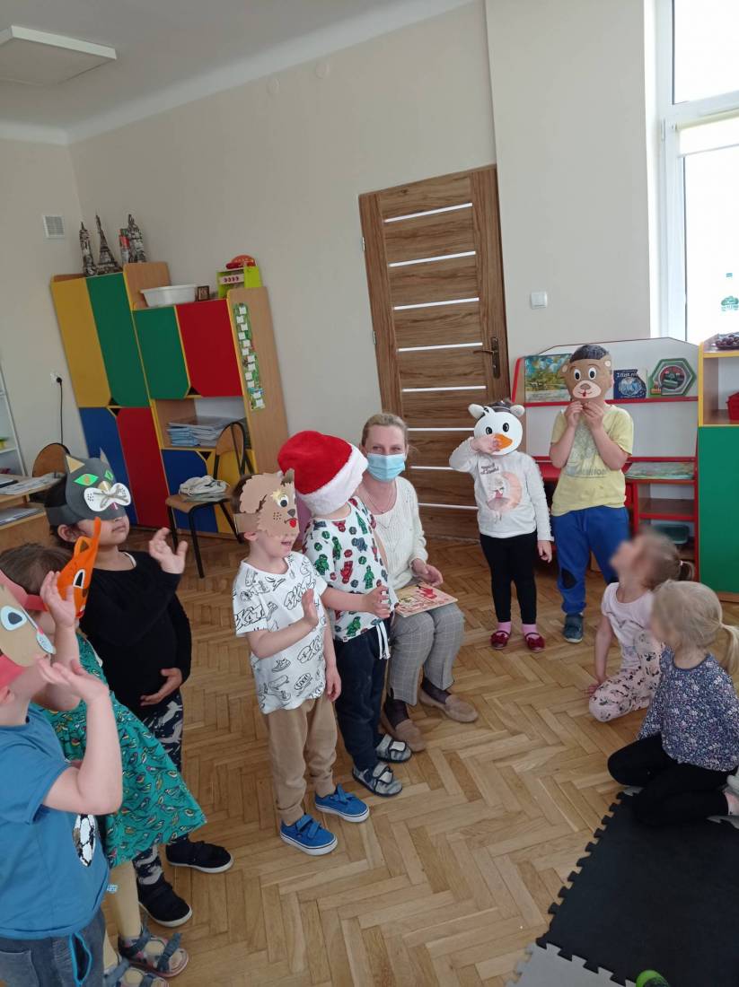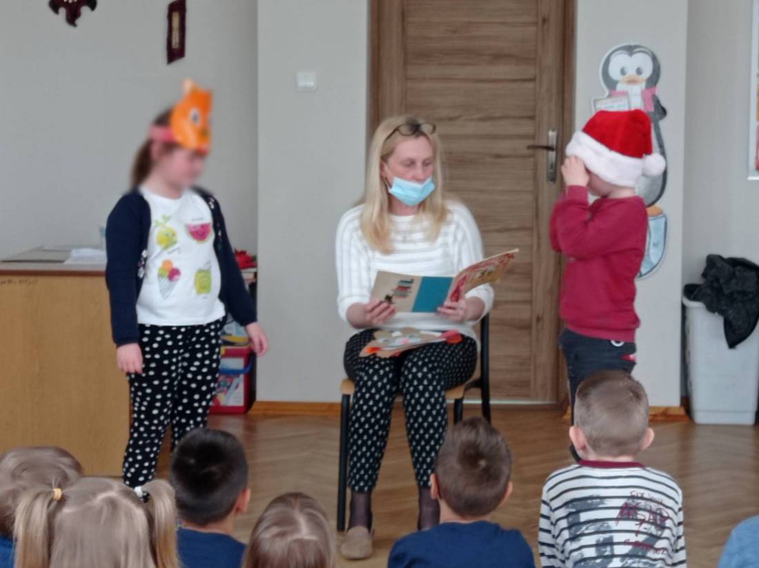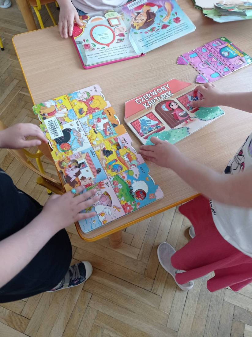Natomiast słuchając opowiadania Heleny Bechlerowej pt.: „Otwórz okienko” dzieci próbowały dokonać przemiany w bohaterów występujących w tym opowiadaniu. Muchomorki, Słoneczka i Motylki – grupy przedszkolne chętnie oglądały książeczki ciekawie wydane, odgadywały bajkowe zagadki i malowały plastusiową kolorowankę.