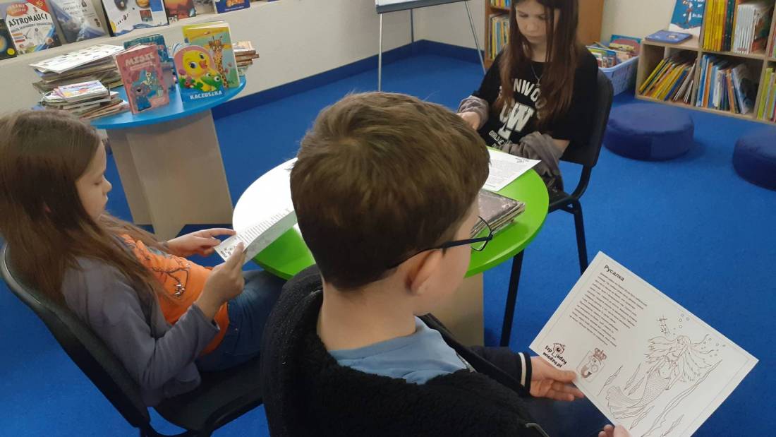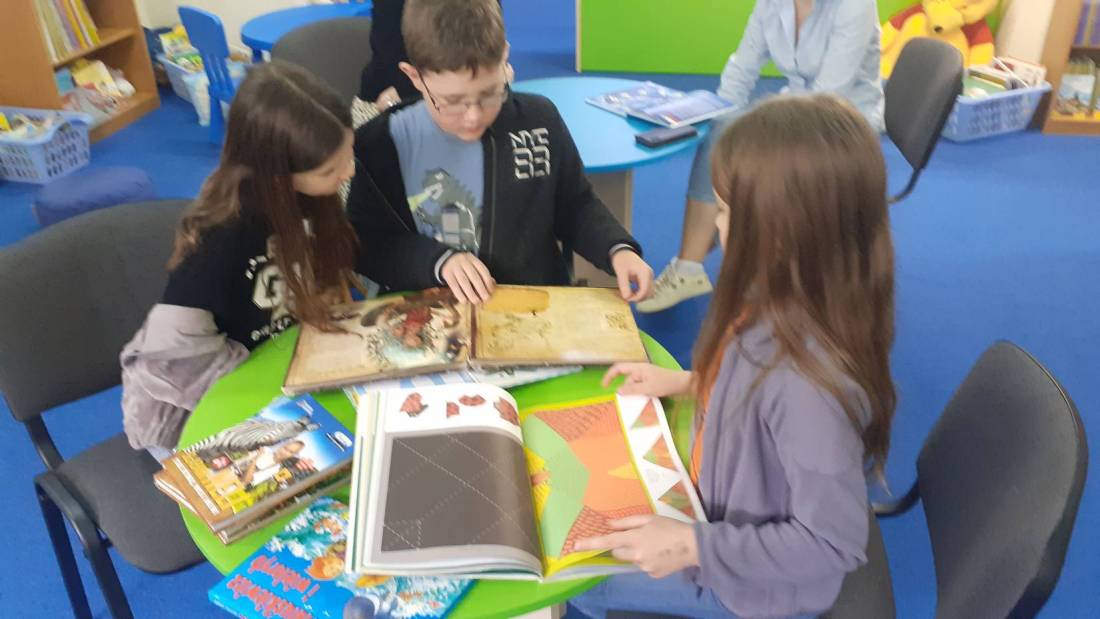 Uczniowie z zainteresowaniem obejrzeli zbiory biblioteczne, bawili się podczas nauki wiersza „Abecadło” J. Tuwima, czytanego w języku polskim przez bibliotekarza. Dzieci czytały też w języku ukraińskim fragmenty baśni: „Золота качка” (Złota kaczka) oraz „Русалка” (Warszawska syrenka), udostępnione przez Lustro Biblioteki.