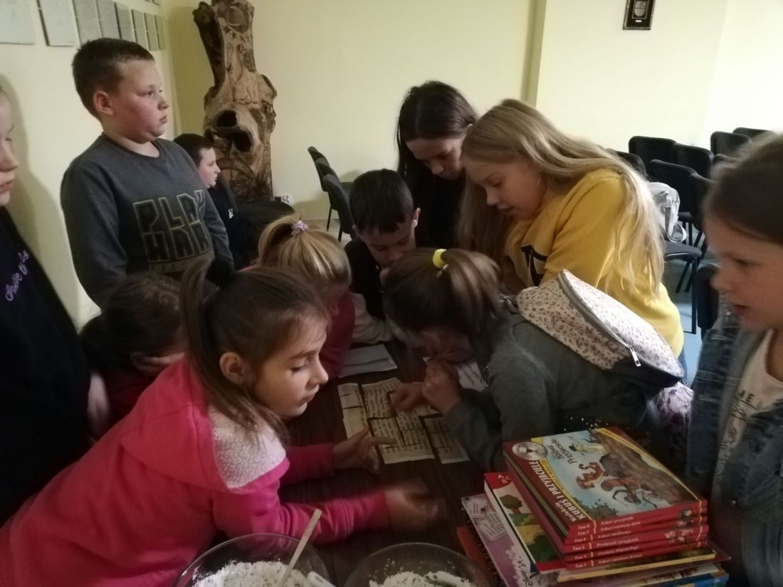 Tegorocznej 8. edycji „Nocy Bibliotek” przyświecało hasło „To się musi powieść”. Akcja w naszej Bibliotece była skierowana do dzieci w wieku od 8 do 12 lat. Ku naszemu zaskoczeniu lista chętnych na to wydarzenie bardzo szybko się zapełniła (docelowo nie chcieliśmy przekroczyć 34 osób). Start imprezy zaplanowaliśmy na godzinę 17.00, koniec na 21.00. Wszystko odbyło się zgodnie z planem; czyli: