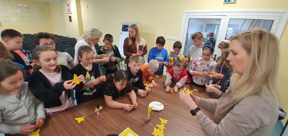 Uczniowie na znak solidarności samodzielnie wykonali papierowe żonkile, symbole pamięci o powstańcach z warszawskiego getta. Uczniom i ich wychowawcom dziękujemy za udział w zajęciach.