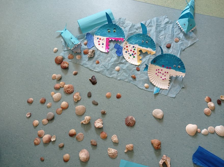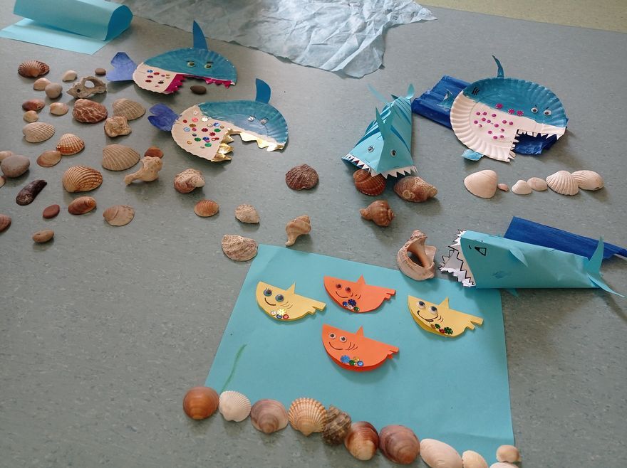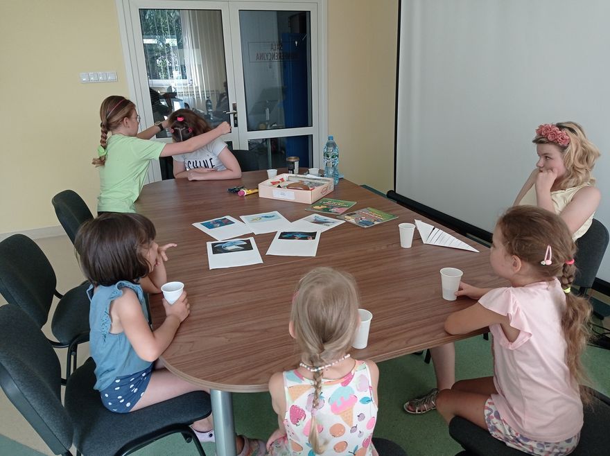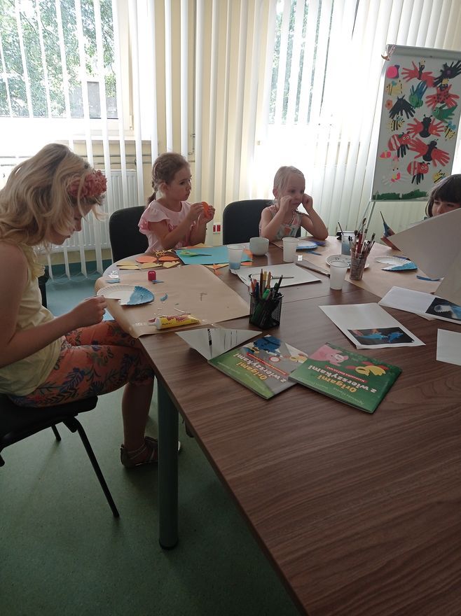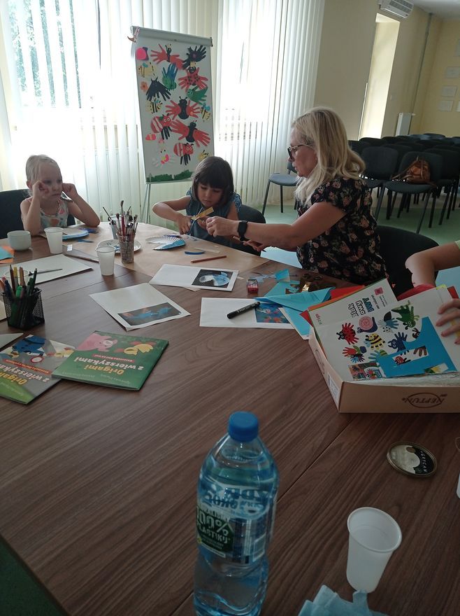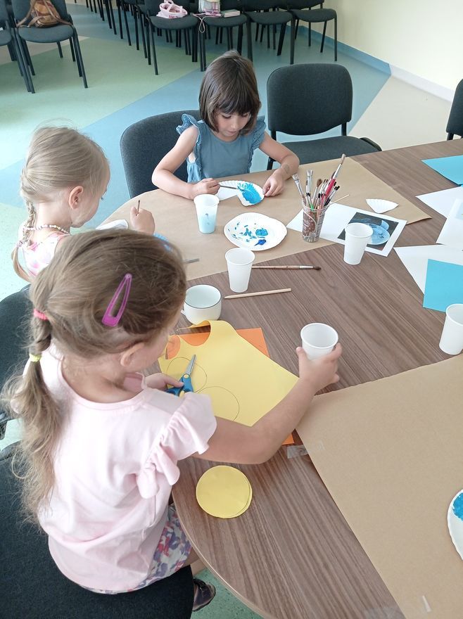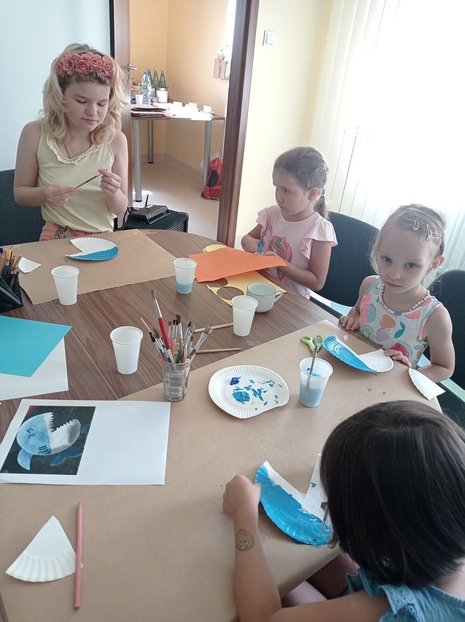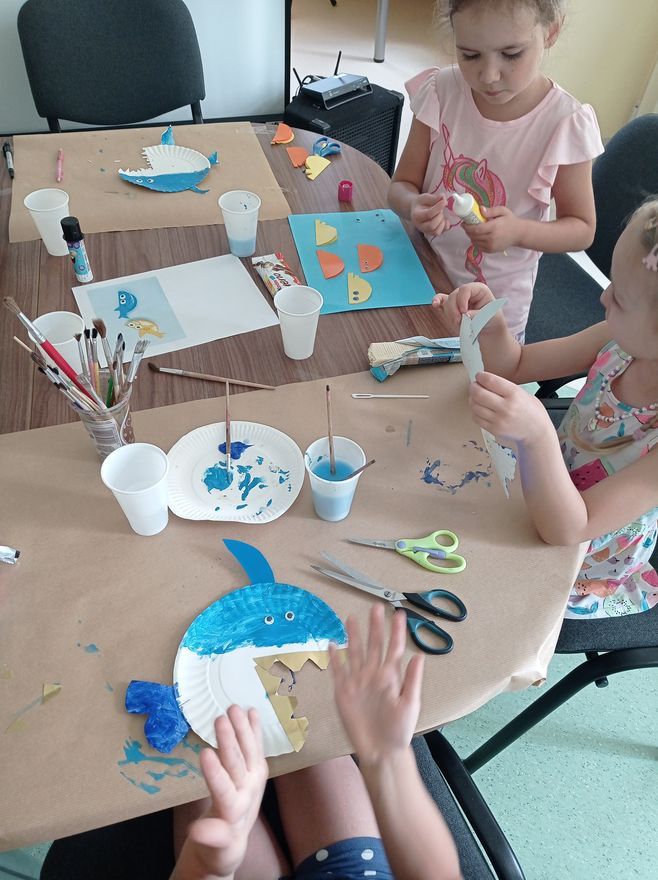 W czwartek uczestnicy zajęć w bibliotece przy ul. Towarowej tworzyli wodny świat. Wystarczyły kredki, farby, nożyczki, klej oraz trochę koralików i muszelek, żeby twórczo i miło spędzić czas. Na koniec zajęć mogliśmy podziwiać efekty naszej pracy.
