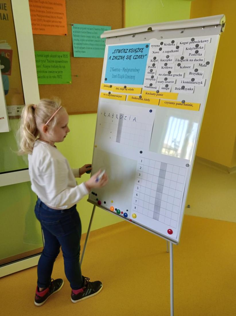 18 kwietnia 2024 r. w Oddziale dla dzieci i młodzieży biblioteki przy ul. Towarowej kontynuowane były zajęcia edukacyjne „Baśniowy świat Hansa Christiana Andersena”. W zajęciach tym razem uczestniczyli uczniowie z klasy II A ze Szkoły Podstawowej nr 7.