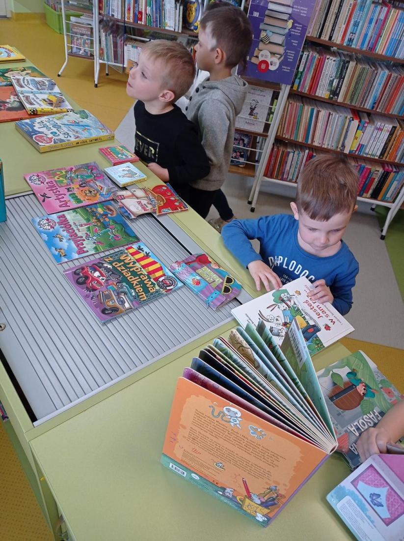 Przedszkolaki zwiedziły Oddział dla dzieci, dowiedziały się co należy zrobić, aby stać się czytelnikiem biblioteki oraz jak należy się w niej zachowywać. Dzieciom bardzo spodobały się kolorowe i bogato ilustrowane książki, które z chęcią oglądały.