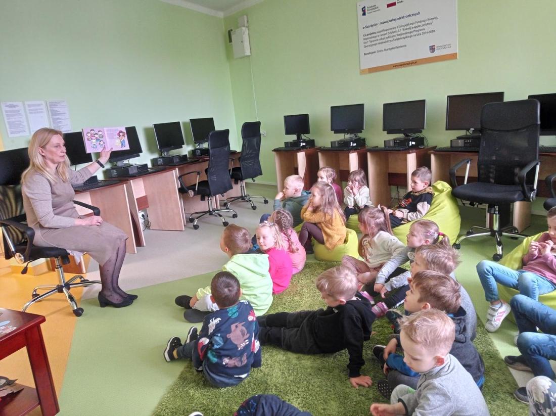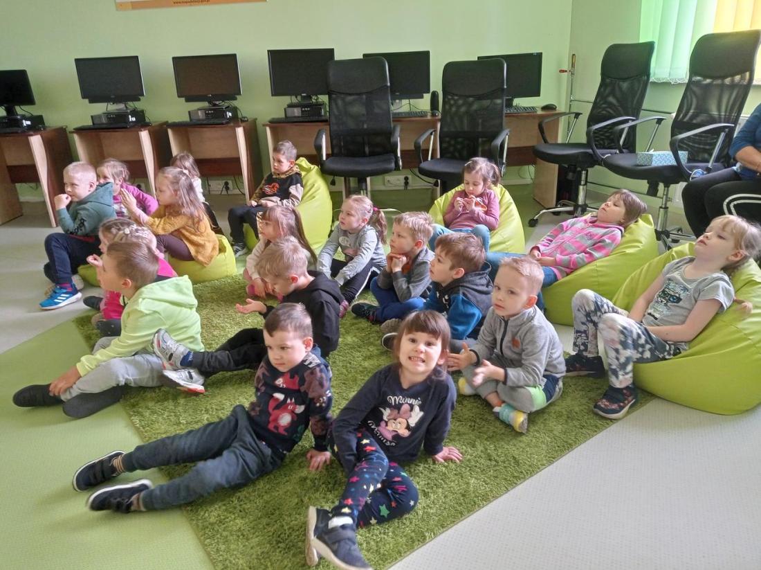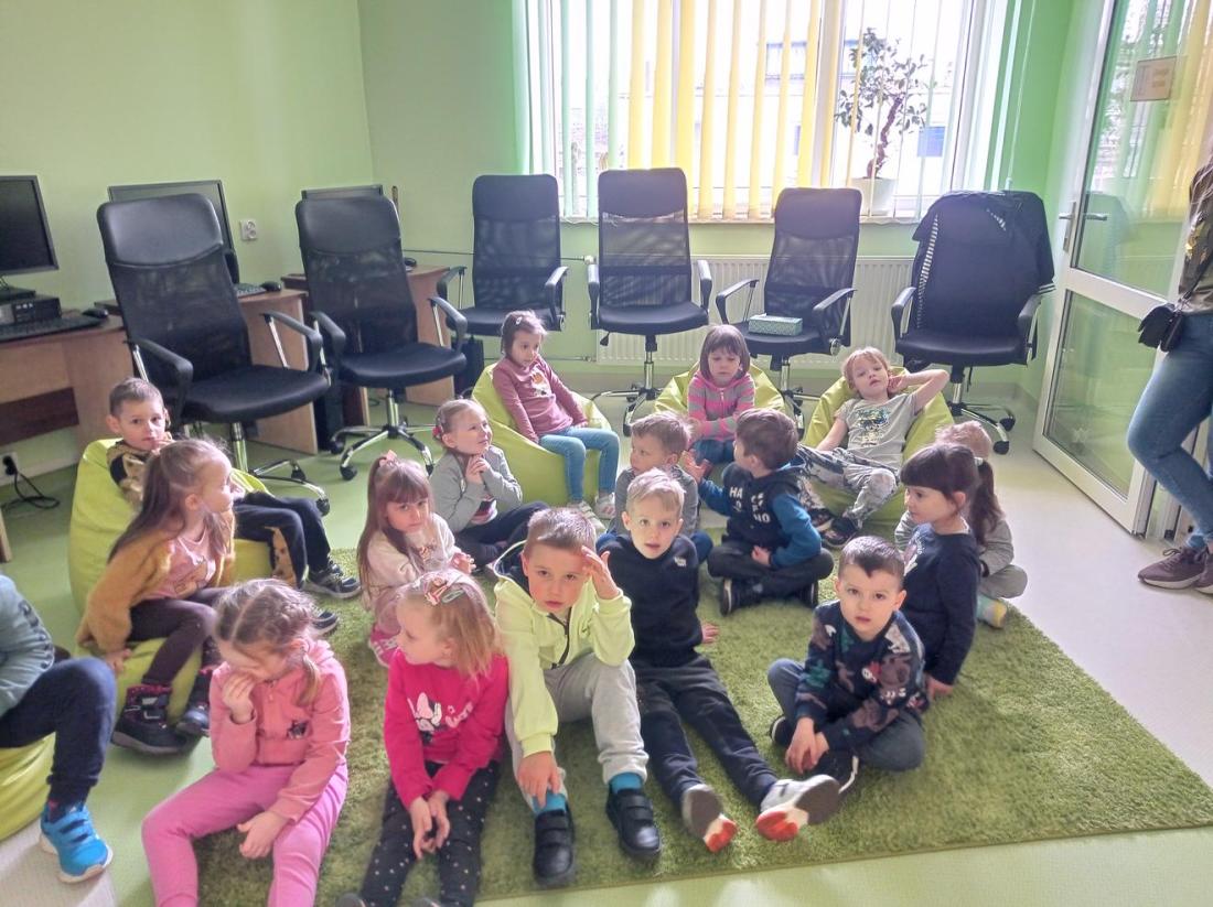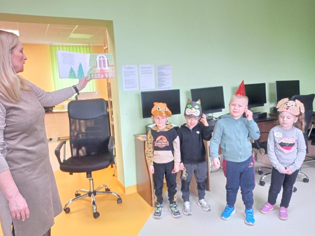 Przedszkolaki zwiedziły Oddział dla dzieci, dowiedziały się co należy zrobić, aby stać się czytelnikiem biblioteki oraz jak należy się w niej zachowywać. Dzieciom bardzo spodobały się kolorowe i bogato ilustrowane książki, które z chęcią oglądały. Wysłuchały przeczytanego przez bibliotekarza opowiadania pt.: „Kicia Kocia w bibliotece” i chętnie uczestniczyli w przygotowanych zabawach.