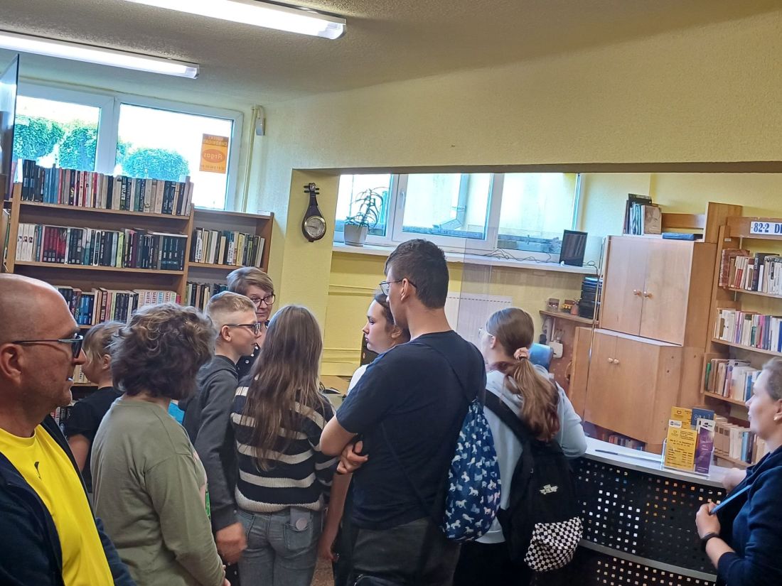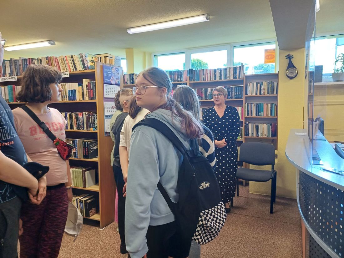 Uczestnicy spotkania poznali też Wypożyczalnię dla dorosłych i Czytelnię.