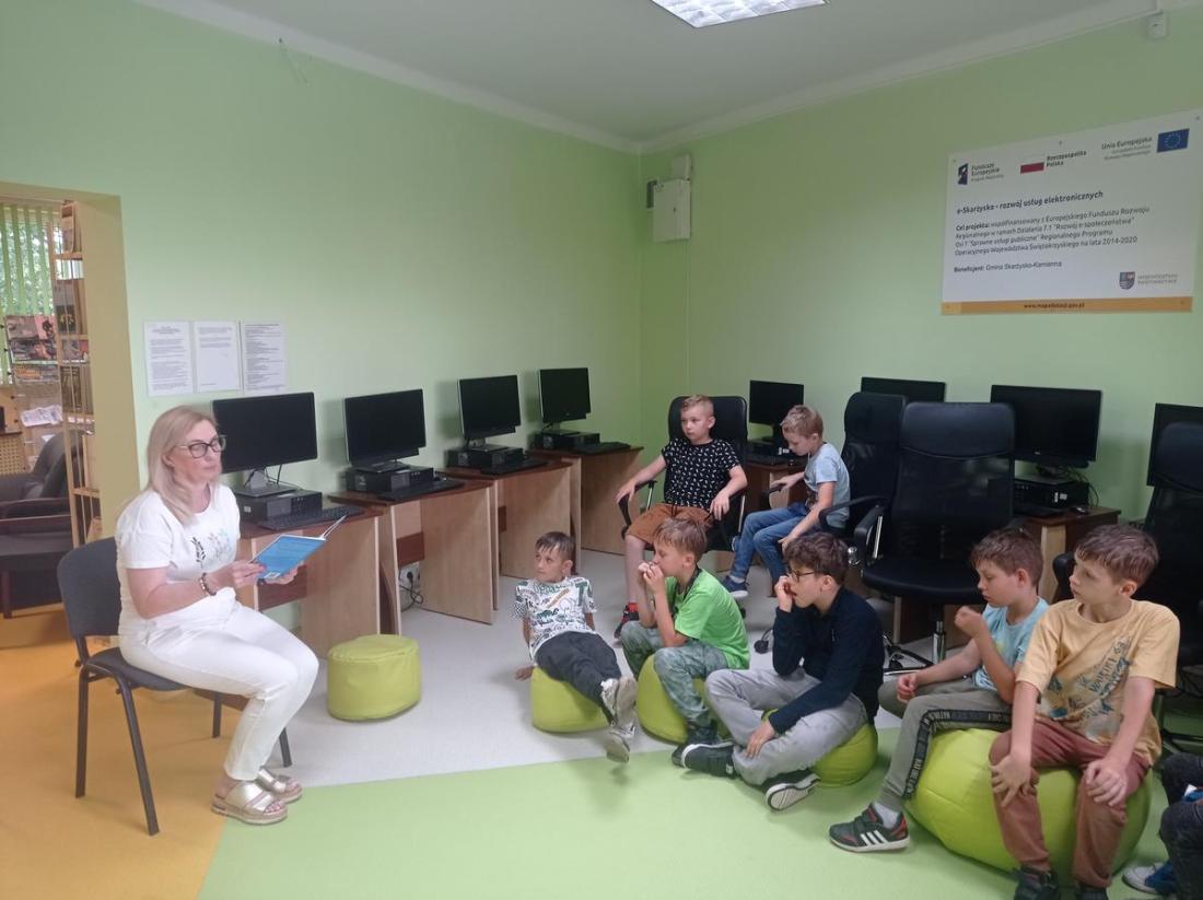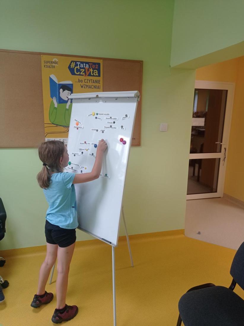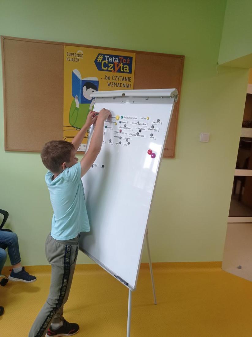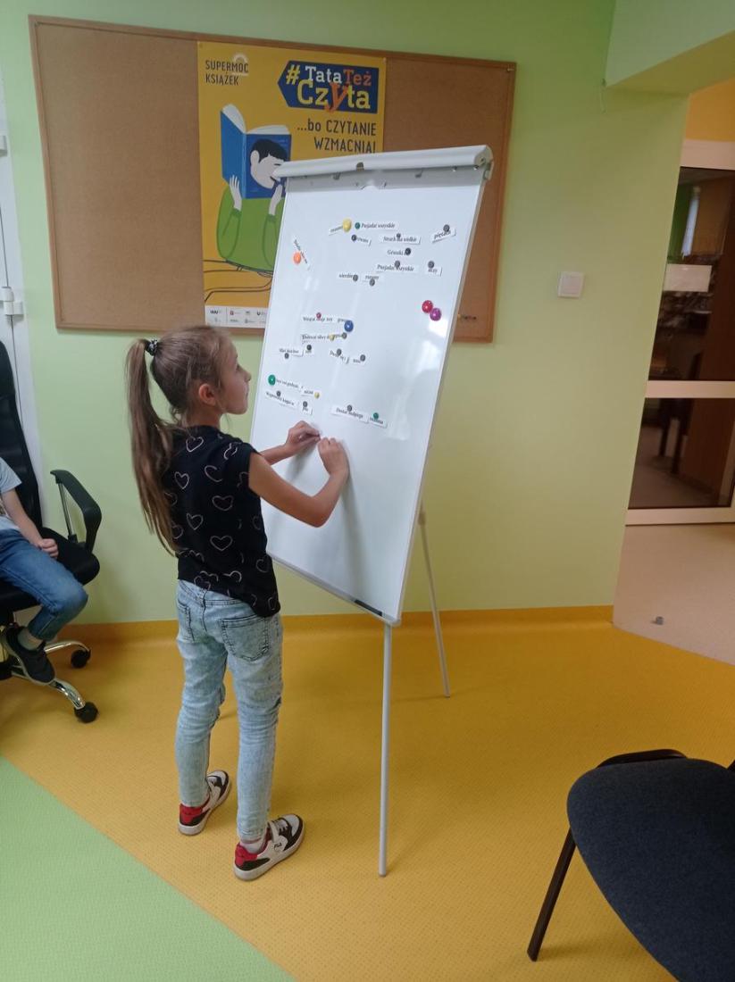 10 czerwca w Oddziale Dziecięcym Filii nr 1 odbyły się kolejne zajęcia w ramach Ogólnopolskiego Tygodnia Czytania Dzieciom, który w tym roku odbywa się pod hasłem: „Porozmawiajmy o książkach, Tygrysie”. W zajęciach uczestniczyli uczniowie z klasy drugiej ze Szkoły Podstawowej nr 8 wraz z wychowawcą. Dzieci z zainteresowaniem słuchały czytanego przez bibliotekarza opowiadania Grzegorza Kasdepki pt.: „ Co to znaczy… czyli 101 zabawnych historyjek, które pozwolą zrozumieć znaczenie niektórych powiedzeń”. Dzięki temu poznaliśmy bohatera książki Bartusia, jego wesołą rodzinkę i szereg zabawnych, z życia wziętych sytuacji wyjaśniających znaczenie powiedzonek: „ciepłe kluchy”, „być nie w sosie”, „biały kruk”, „kozioł ofiarny” czy „być na świeczniku”. Dzieci świetnie poradziły sobie bawiąc się w przysłowiowe kalambury oraz układając przysłowia z rozsypanki wyrazowej.