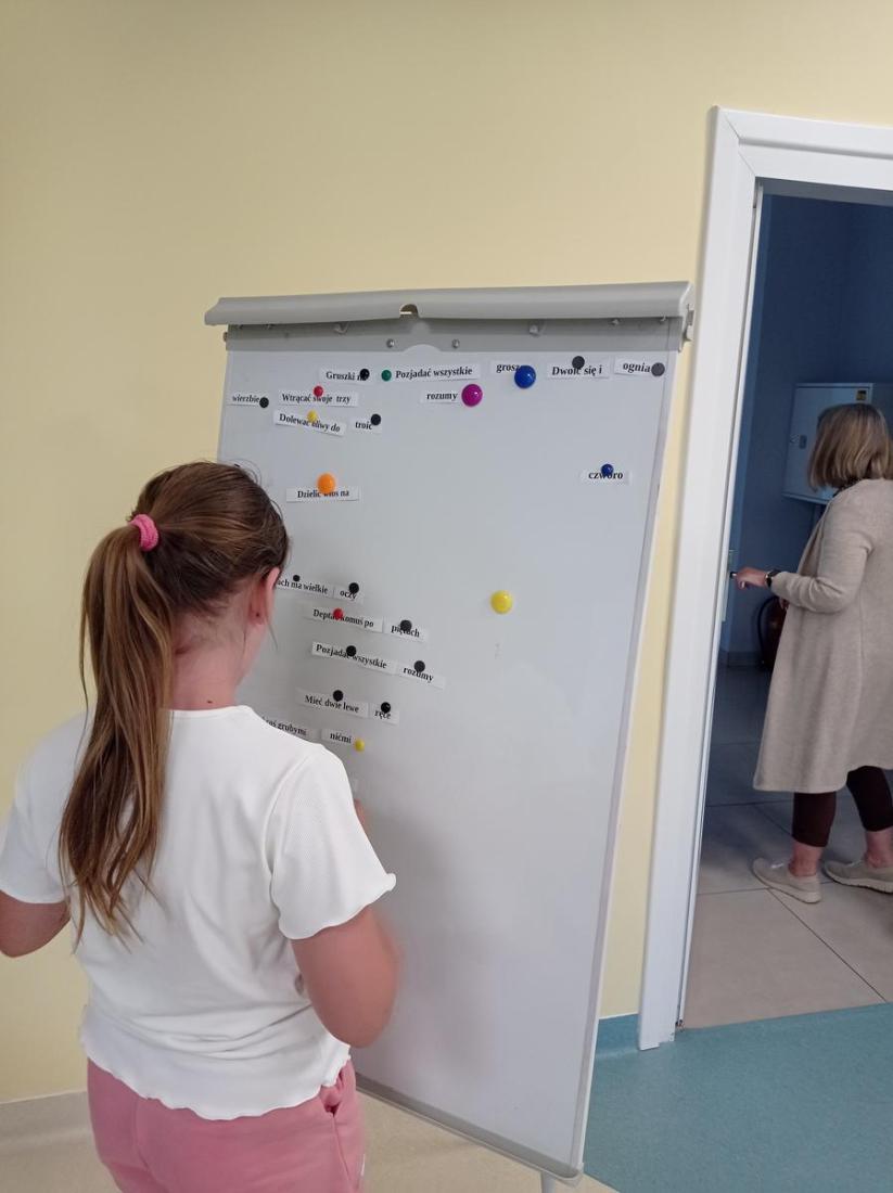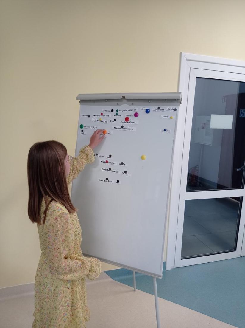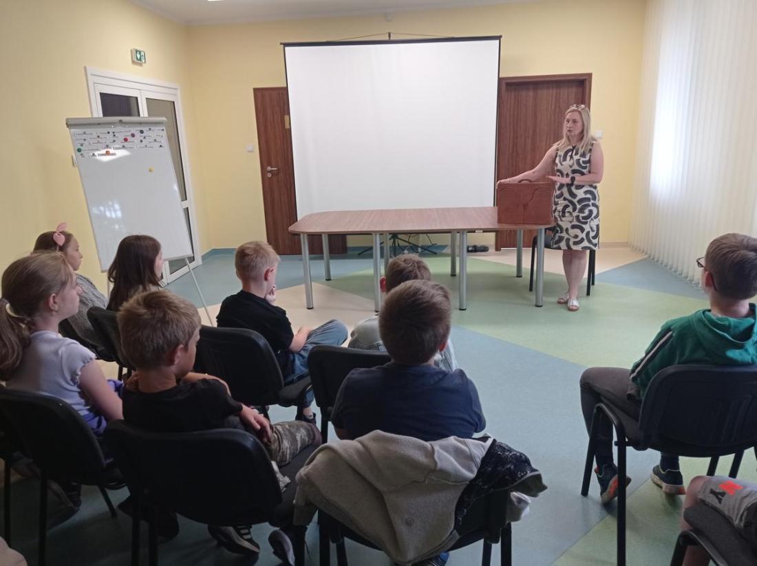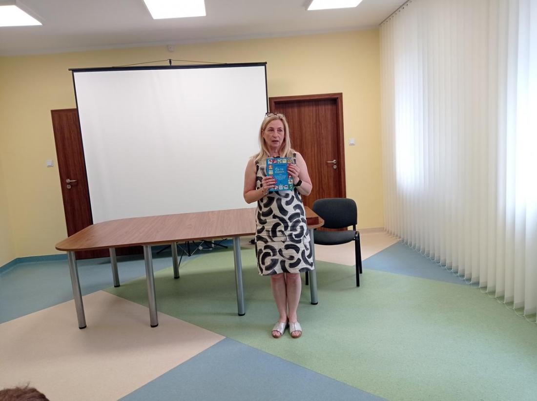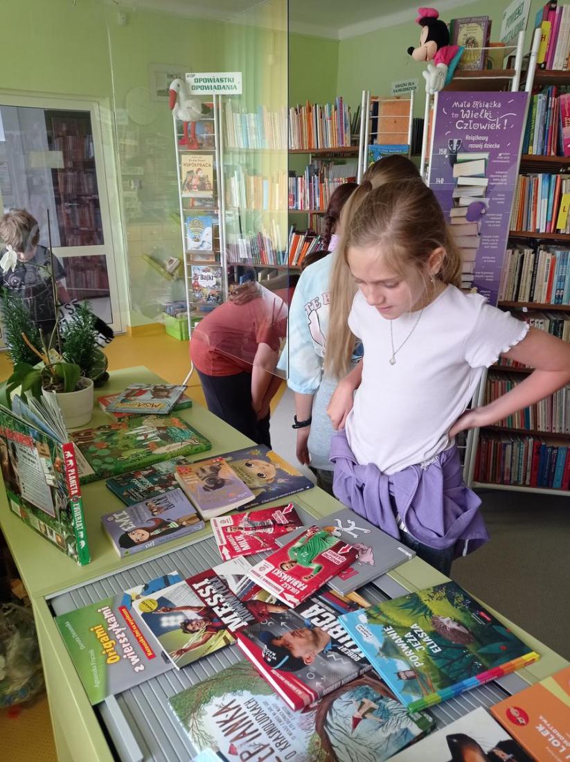 Bibliotekarz przeczytał również opowiadania Grzegorza Kasdepki pt.: „ Co to znaczy… czyli 101 zabawnych historyjek, które pozwolą zrozumieć znaczenie niektórych powiedzeń”. W ten sposób przybliżyliśmy dzieciom powiedzenia i przysłowia. Dużo radości i śmiechu było podczas prezentacji powiedzeń tj.: „łamać sobie głowę”, „biec jak na skrzydłach”, „zapuszczać żurawia” czy „chodzić spać z kurami”. Bawiąc się w przysłowiowe kalambury i układając rozsypankę z wyrazów uczniowie wykazali się wiedzą i kreatywnością. Nie zabrakło czasu na obejrzenie książek, które gromadzone są w bibliotece z myślą o jej młodszych czytelnikach. Dziękujemy za miłe spotkanie uczniom i ich opiekunom.