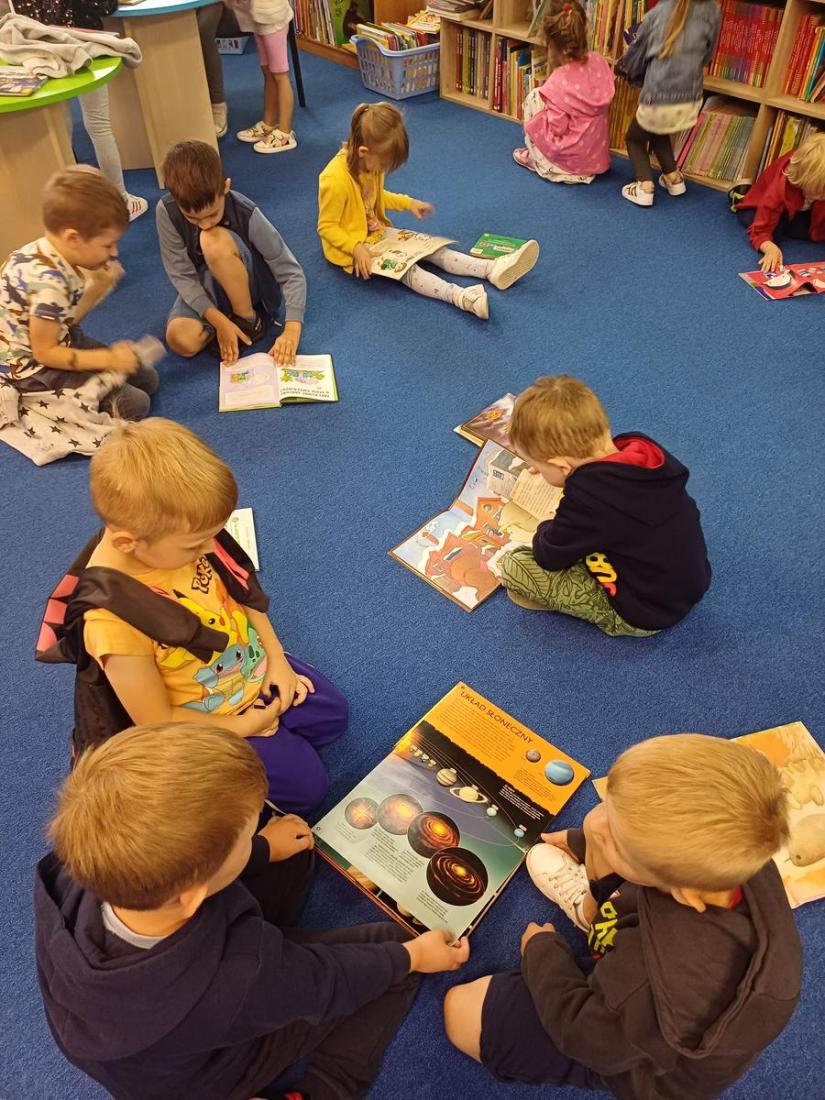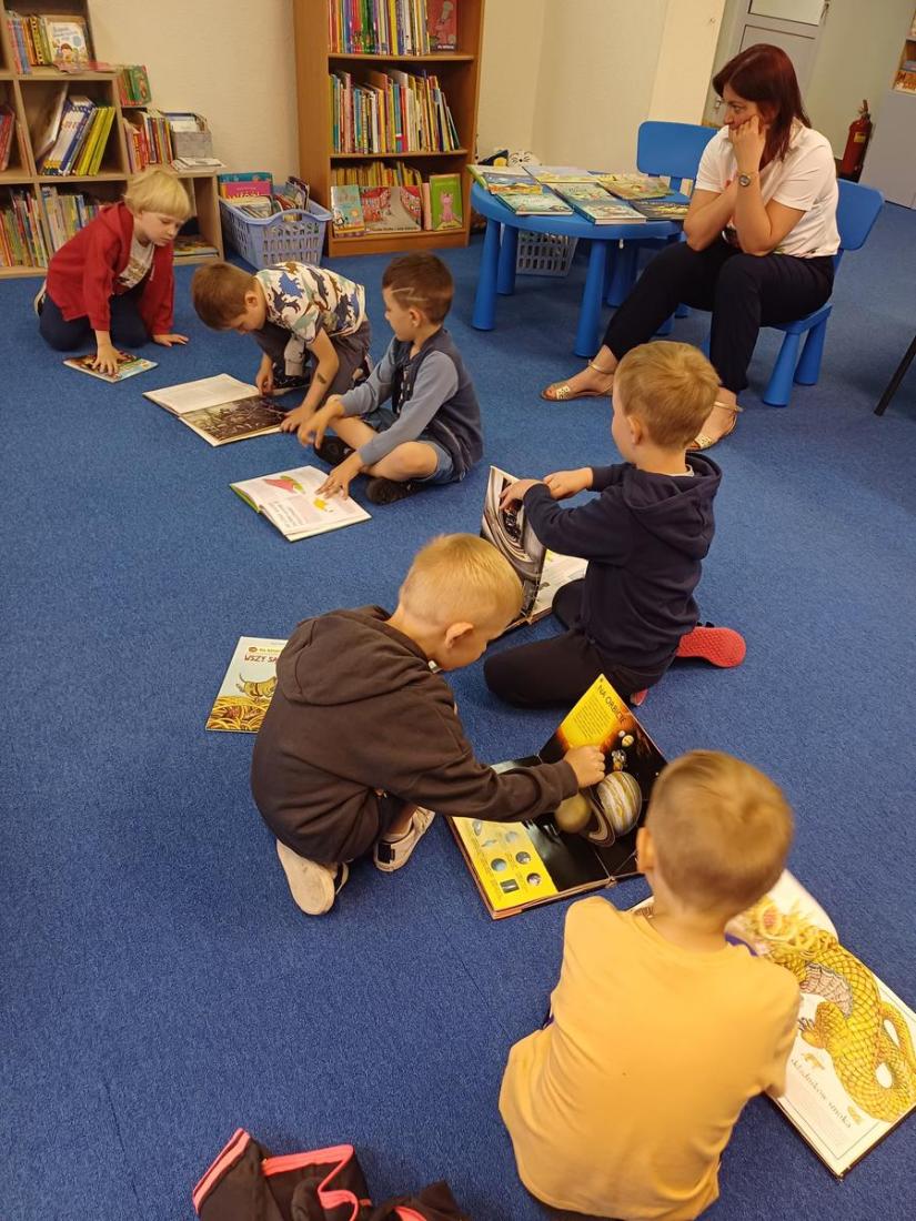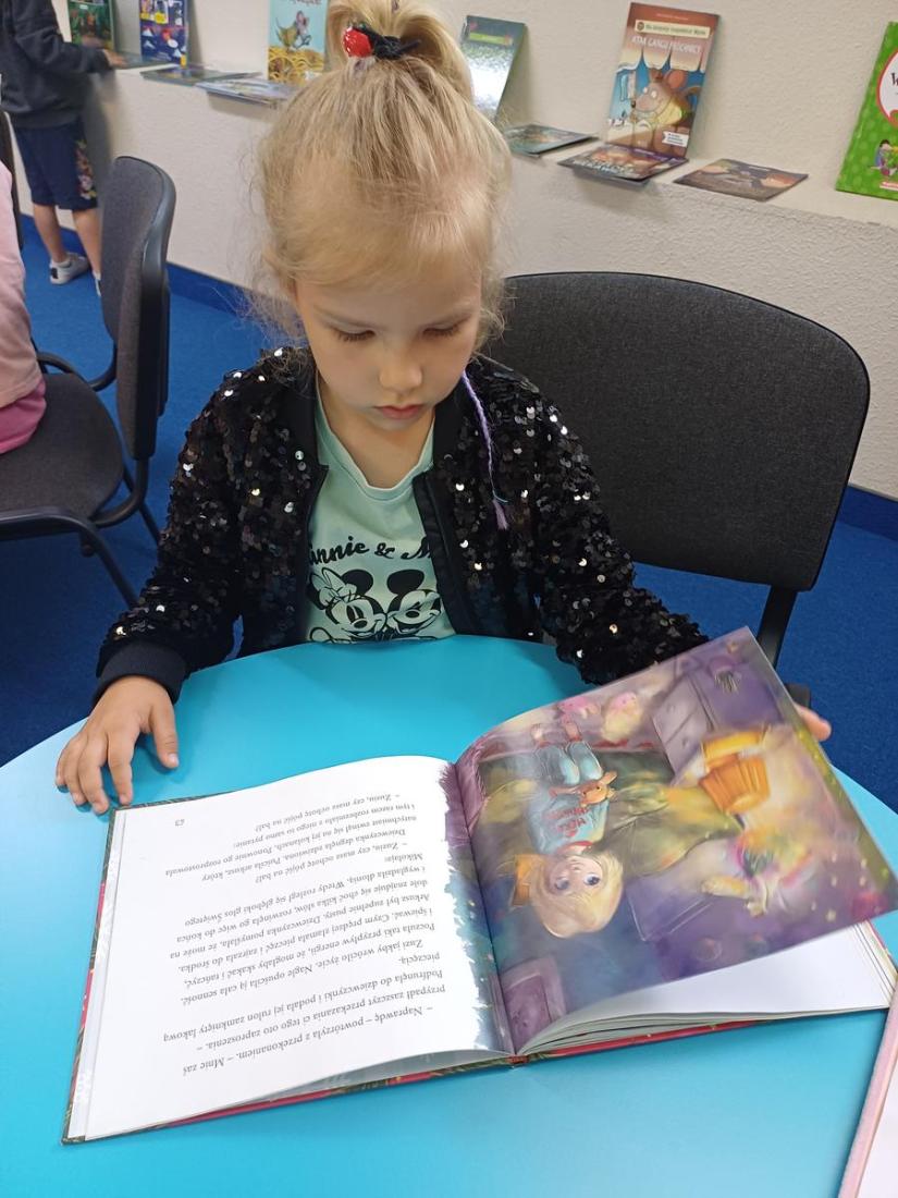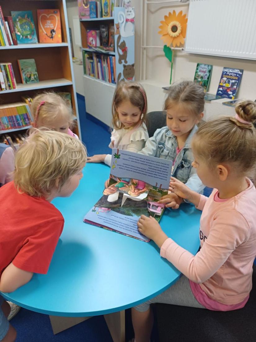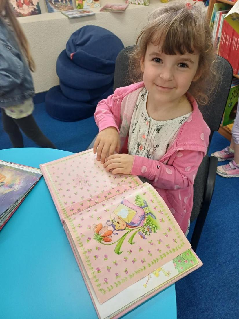Podczas spotkania przedszkolaki doskonale się bawiły i z zainteresowaniem przeglądały bajeczki.