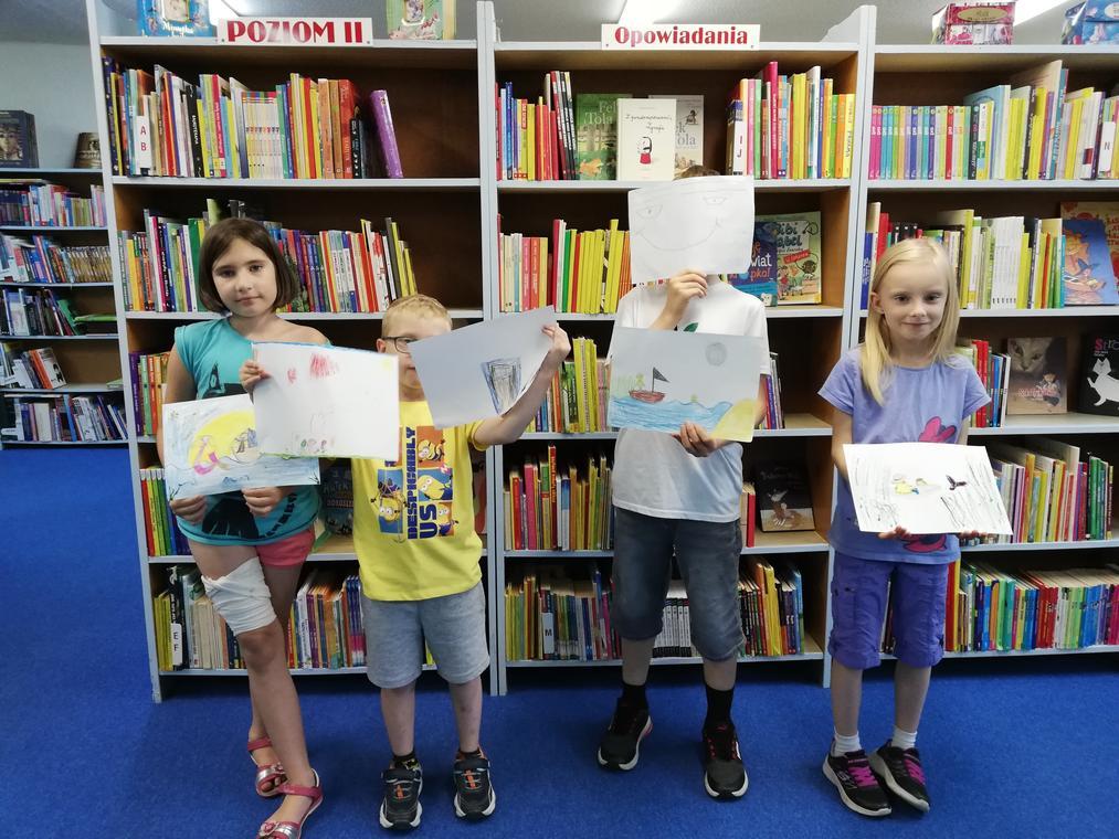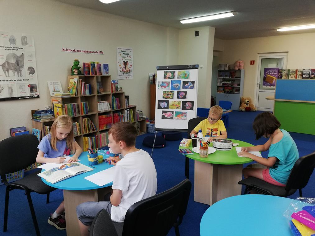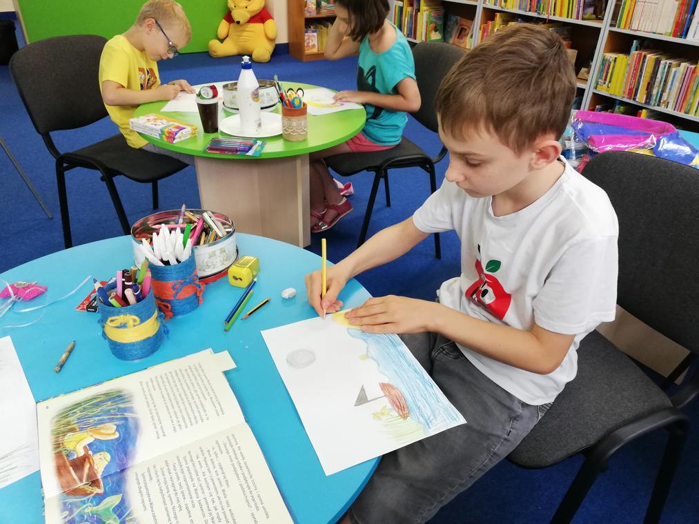 Trzeci tydzień wakacyjnych zajęć w Filii nr 2 przy ul. Sezamkowej upłynął niezwykle szybko, jak to zawsze bywa przy dobrej zabawie. Humory dopisywały wszystkim, a dzięki wyobraźni i pomysłowości powstało wiele pięknych prac plastycznych.