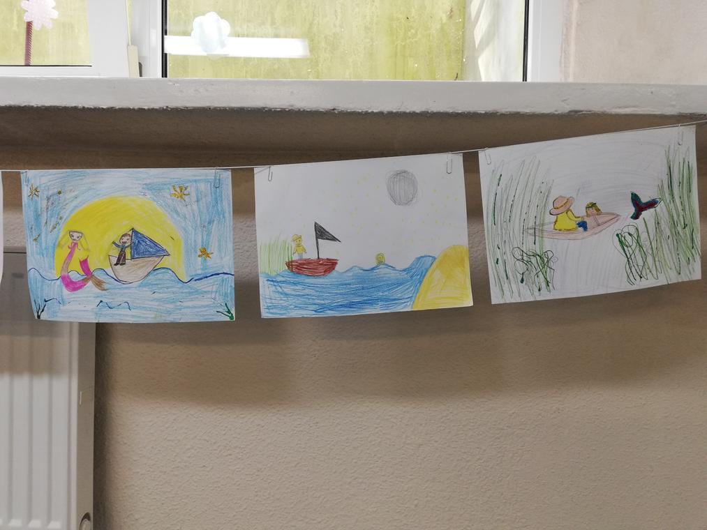 „Magiczne opowieści” – Zajęcia rozpoczęły się czytaniem legendy o Warsie i Sawie, do której następnie przygotowano piękne ilustracje przedstawiające spotkanie rybaka z syreną. Rysując ogon syrenki dzieci inspirowały się zdjęciami tropikalnych ryb o fantazyjnych kształtach i kolorach. Wisienką na torcie okazały się brokatowe kleje, które nadały obrazkom dodatkowego uroku. Pozostały czas wypełniły gry i zabawy.