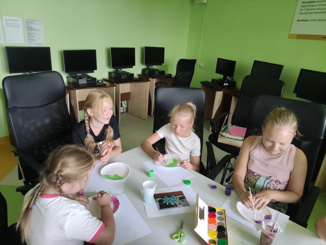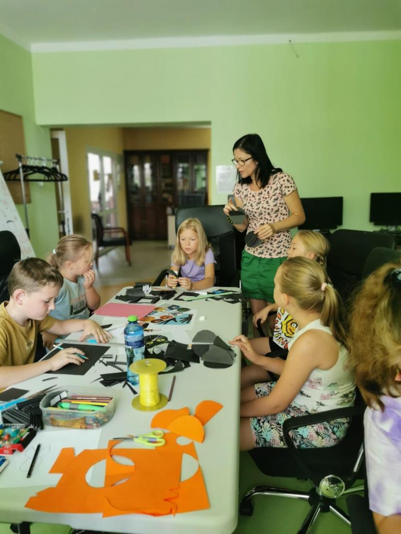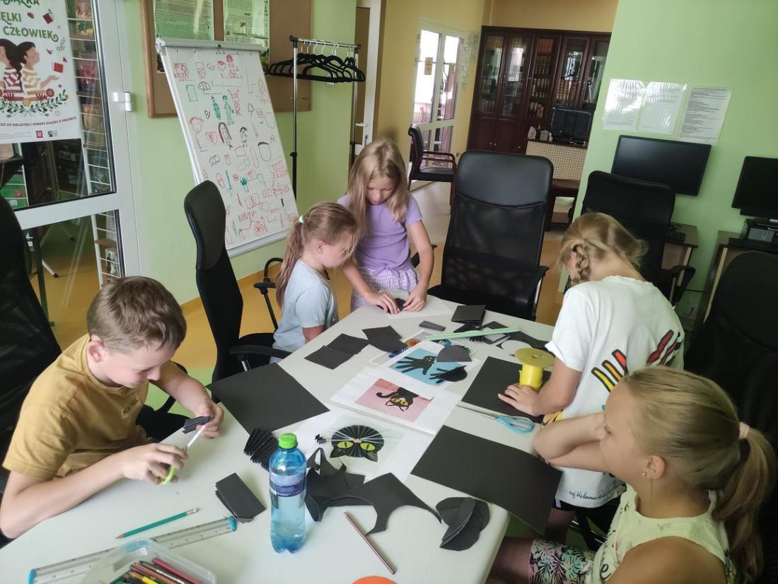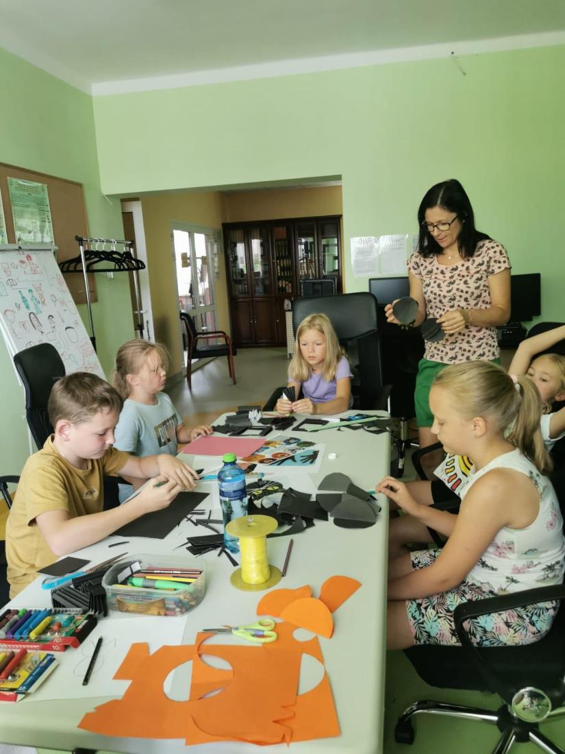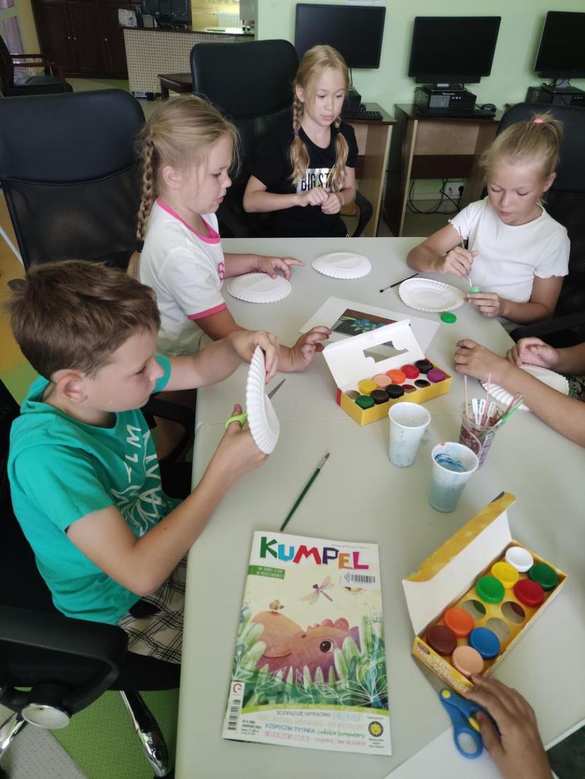 W naszej bibliotece doskonale zdajemy sobie sprawę z tego, jak ważny jest rozwój manualny dzieci. Dlatego na zajęciach wakacyjnych staramy się jak najwięcej ćwiczyć małą motorykę – lepimy z plasteliny, wycinamy, robimy wydzieranki, wyklejanki, malujemy, rysujemy itp. Wszystko po to, aby wspomóc pracę paluszków :-)
