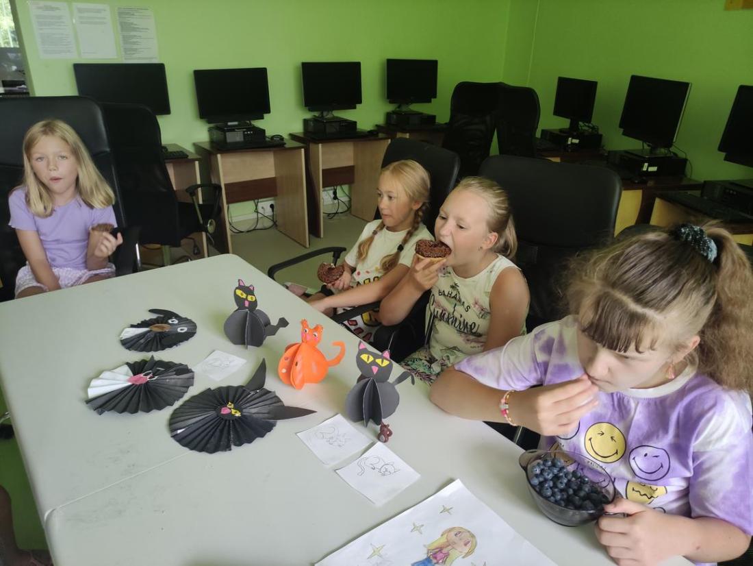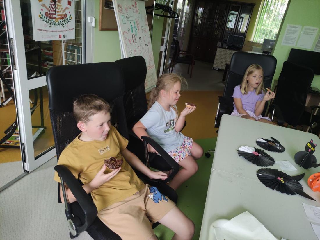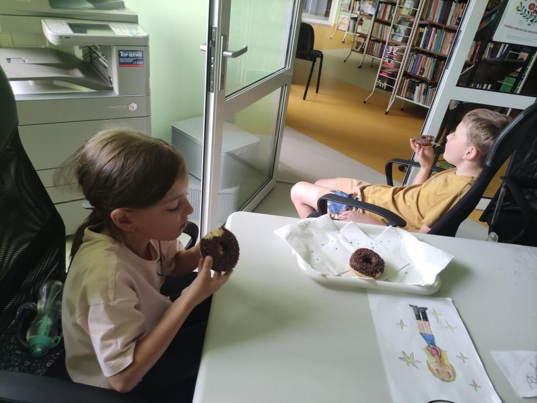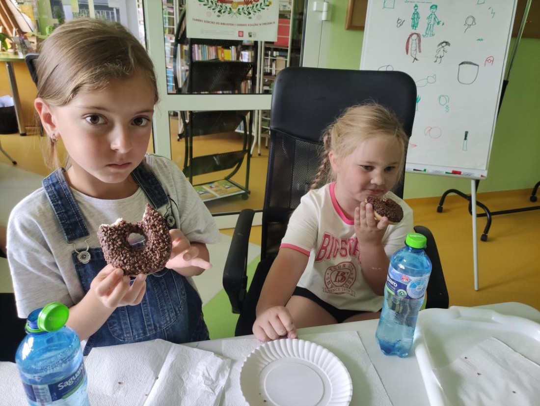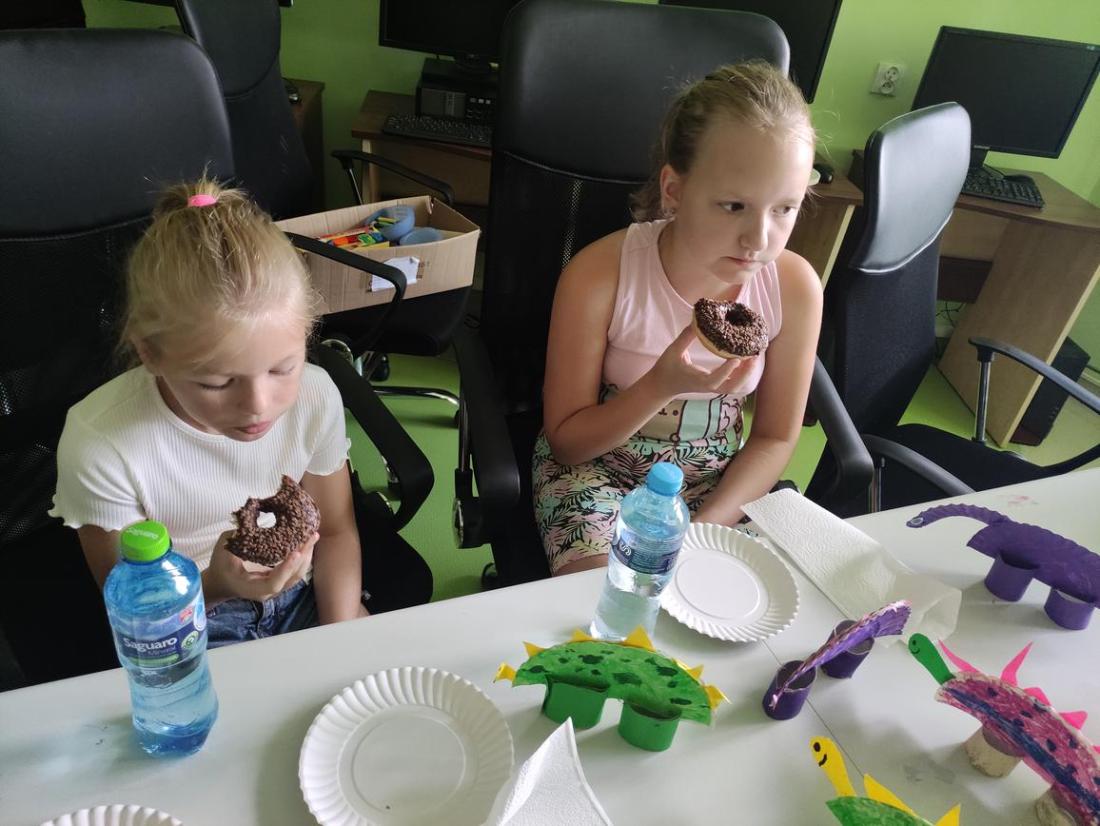 Po ciężkiej pracy dzieciaczki ze smakiem zajadały słodki poczęstunek.