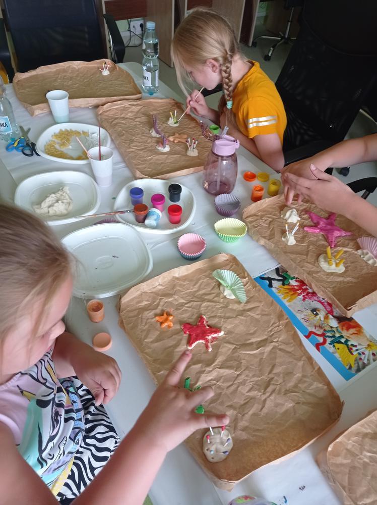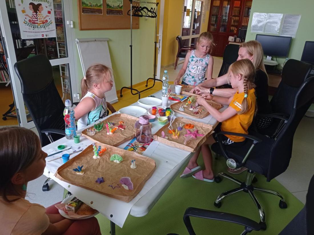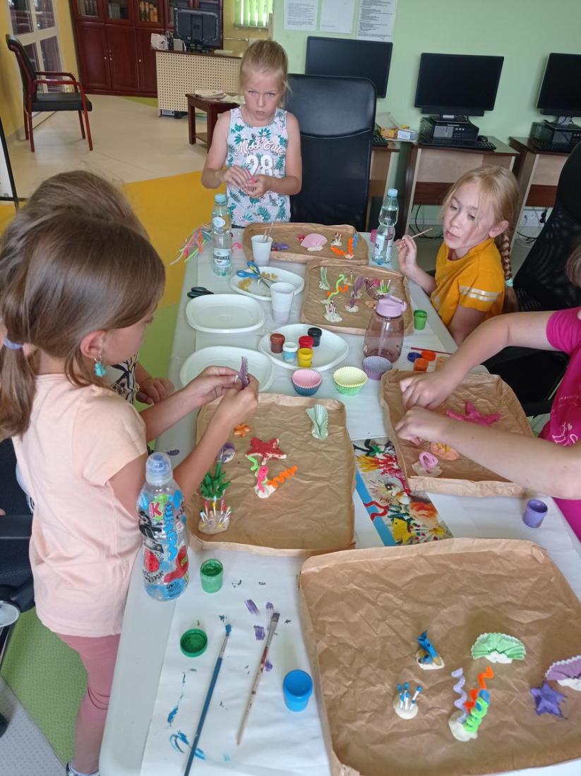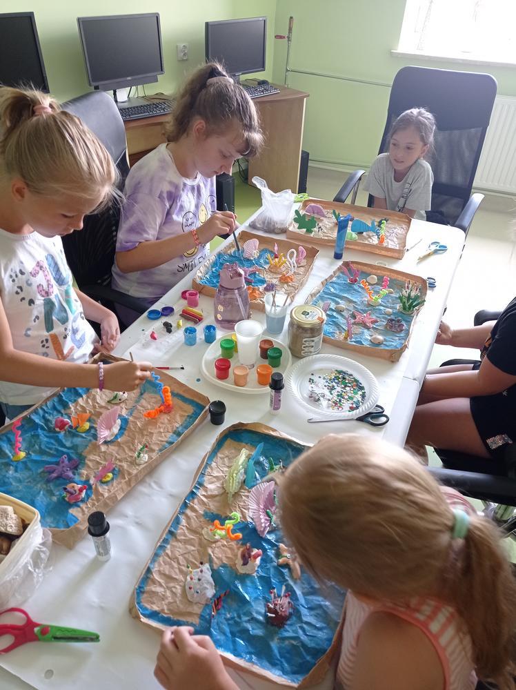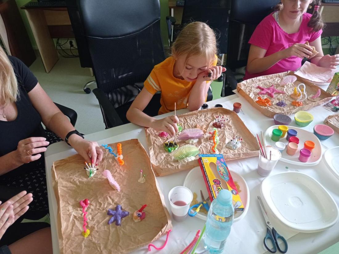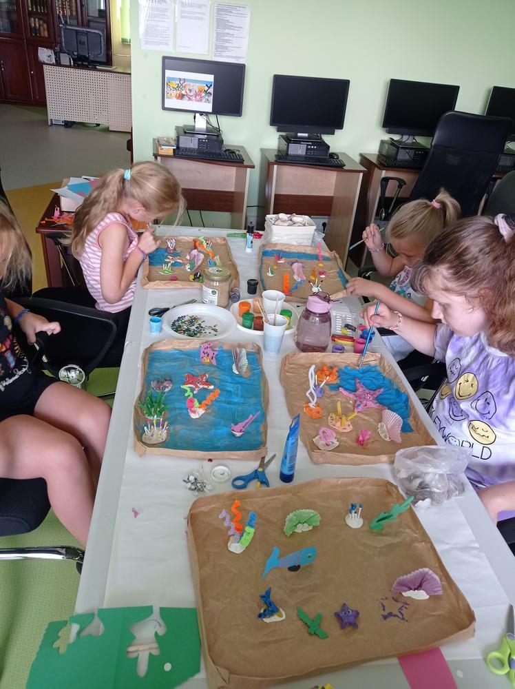„Dobrze się bawię i więcej wiem”, to zajęcia plastyczno-edukacyjne. Na zajęciach zgłębiliśmy naszą wiedzę o organizmach żyjących w morzach i oceanach. Ciekawostką okazała się ryba Rozdymka, która jak się okazało jest najbardziej toksyczną rybą świata. Do wykonanej poprzedniego dnia makiety rafy koralowej uczestnicy zajęć dołączyli, wykonane przez siebie różne gatunki ryb.