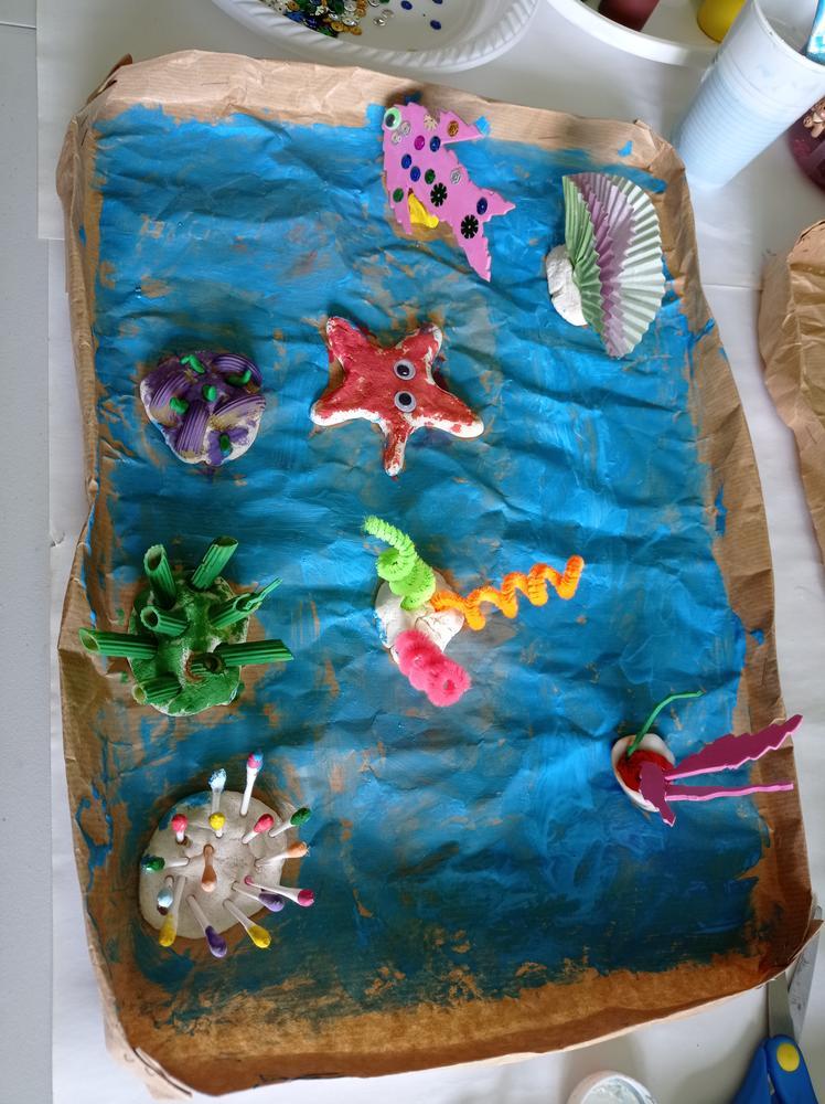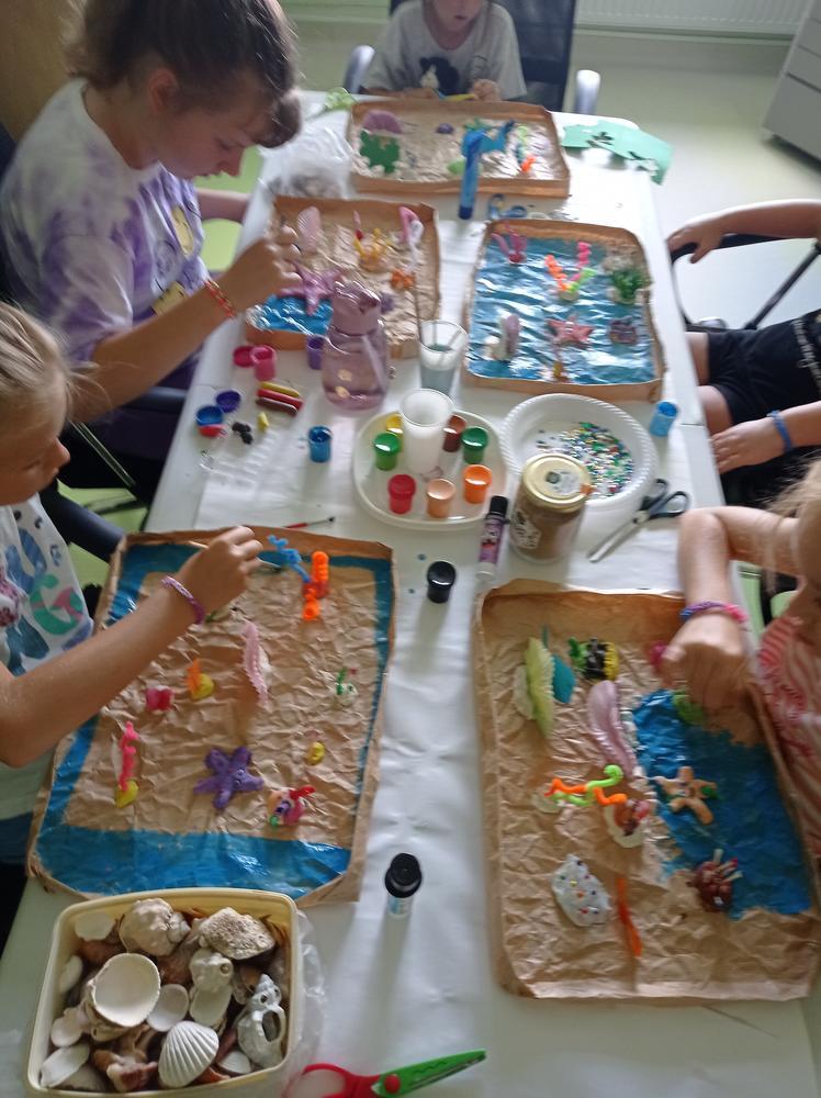 Po wysłuchaniu baśni pt. : „O królowej Bałtyku” powstały piękne, kolorowe rafy koralowe.