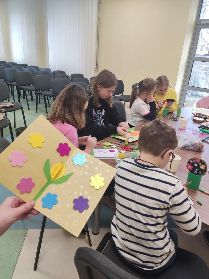 Rozpoczęły się ferie zimowe, a wraz z nimi rozpoczęliśmy w Bibliotece zajęcia dla dzieci. Chętnych do wspólnej zabawy nie zabrakło. Zajęcia rozpoczęliśmy zajęciami plastycznymi, na których dzieci wykonywały upominki dla swoich babć i dziadków z okazji ich święta. Dzieciom udało się wyczarować z papieru piękne laurki oraz flakony z bukietami kwiatów. Prawdopodobnie niejedna babcia i niejeden dziadek będą mile zaskoczeni talentem plastycznym swoich wnuków. Zajęcia przebiegały w skupieniu, każdy starał się, aby efekt jego pracy był jak najlepszy.